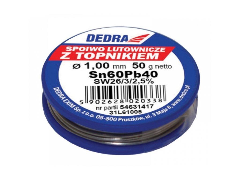 Pájecí cínový drát s tavidlem se používá během procesu pájení. Cín pro pájení je nejběžnější materiál používaný při pájení. Drát o průměru 1,0 mm. Pojivo je srolováno na kotouči, pro bezproblémové používání při pájení. Za pomoci páječky vytváří trvalé spojení s integrovanými, elektronickými a elektrickými komponenty. Drát lze používat s transformátorovými i odporovými páječkami.