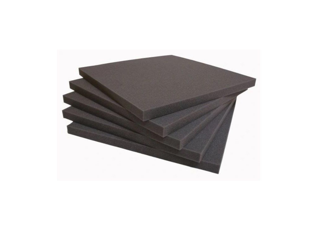 Pěnová výplň černé barvy o rozměrech 50x50 a tloušťce 2 cm, hustotě 45 kg/m3, je vhodná pro snadné pořádání a bezpečnější skladování nářadí.