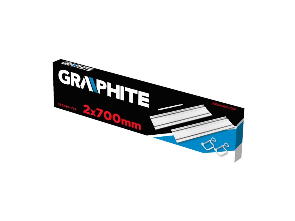 Dvě vodící kolejnice značky GRAPHITE s jednotkovou délkou 700 mm umožňují přesné vedení ponorné pily GRAPHITE 58G495. Vysoce kvalitní hliníkové lišty jsou vybaveny pryžovou vložkou proti pilinám, speciální protiskluzovou páskou namontovanou zespod lišt a teflonovými kluznými drahami, usnadňujícími rovnoměrné vedení ponorné pily. Při prvním použití se pryžová lišta automaticky přizpůsobí používanému nářadí. V případě řezání dlouhých prvků pomocí spojovací součástky existuje možnost rychlého spojení dvou kolejnic. Existuje možnost upevnění kolejnice k obráběné ploše pomocí k tomu určených svorek, což umožňuje uživateli soustředit se výhradně na vedení ponorné pily s cílem dosáhnout plánovaného efektu řezání. Díky speciálně vyprofilovaným drážkám svorky během práce nepřekážejí.