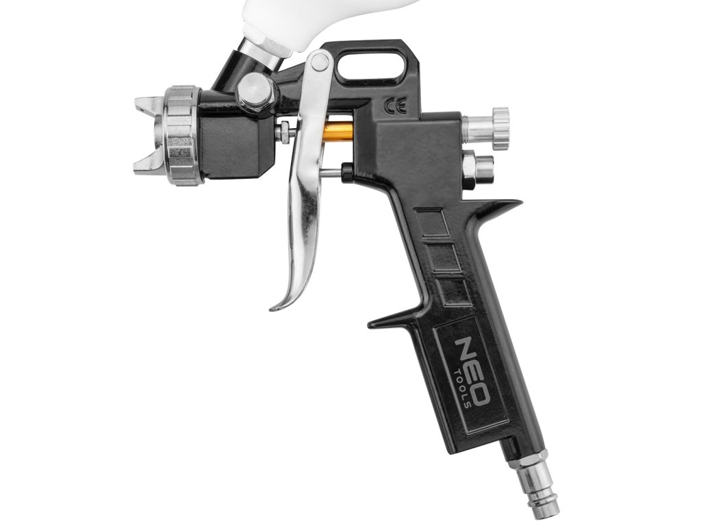 stříkací pistole NEO s horní nádrží o objemu 0,5l. Má trysku o průměru 1,4 mm. Zajišťuje efektivní a přesnou práci. S nastavením tlaku ve 2 rozsazích. To umožňuje přizpůsobit výkon pistole typu barvy a povrchu. Maximální pracovní tlak do 4 barů. Certifikát CE zaručuje soulad s evropskými bezpečnostními normami. Značka NEO splňuje očekávání profesionálů.