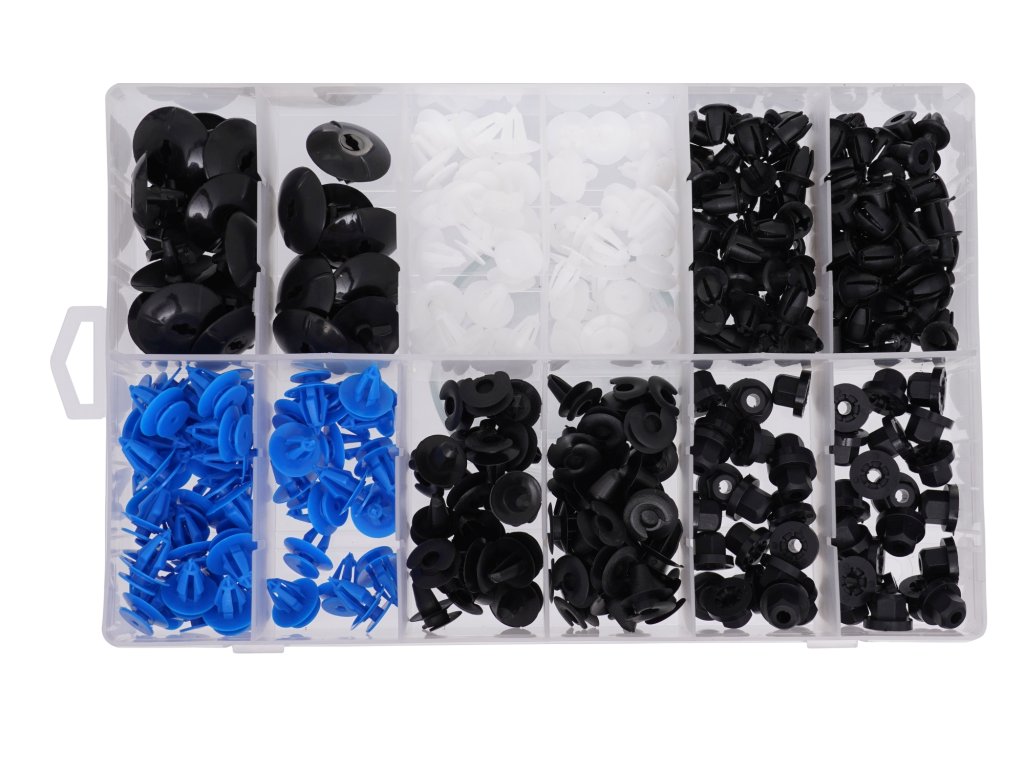 Sada plastových spon pro automobily značky Opel Balení obsahuje 6 typů spon, celkem 300 spon. Celek je zabalen v krabici s praktickými přihrádkami.