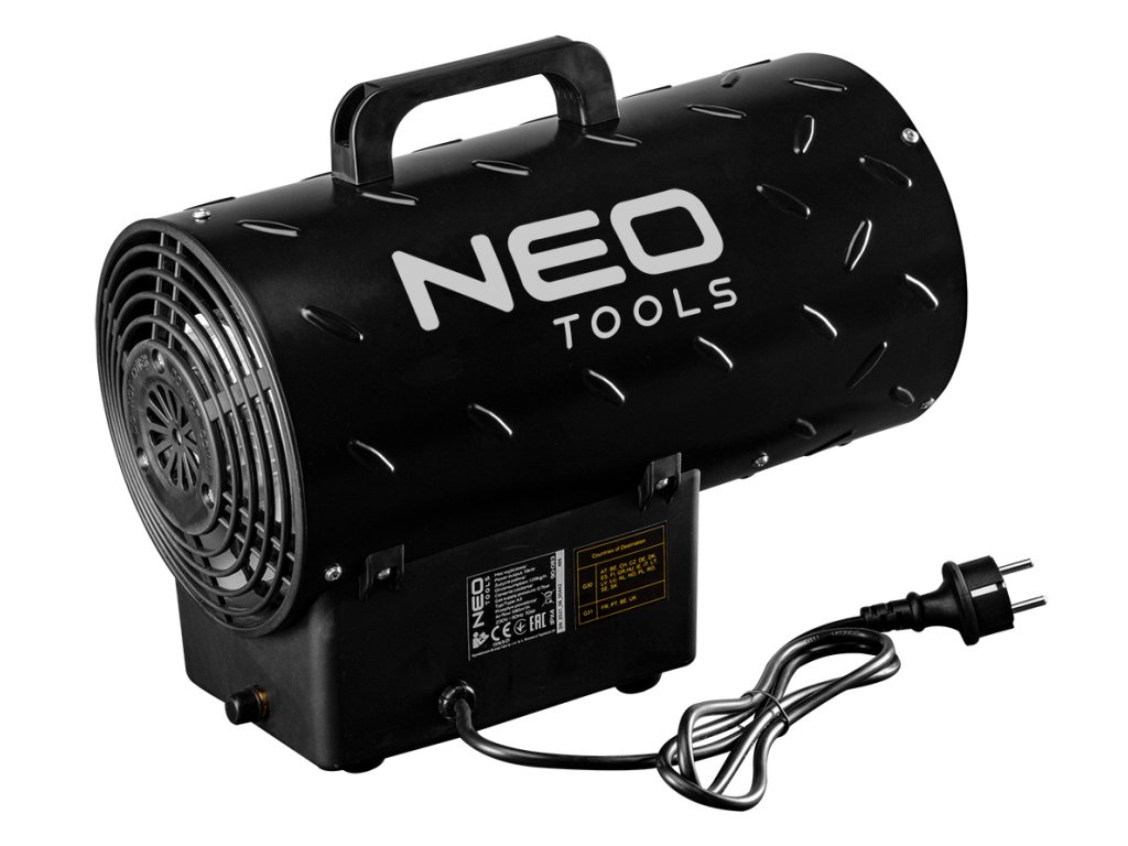 Plynové topné těleso NEO (ref. 90-083) s piezoelektrickým zapalováním a výkonem 15 kW je přenosný zdroj tepla, který je určen k vytápění místností, jako jsou haly, sklady, staveniště. Zařízení je vybaveno ochranou proti přehřátí a úniku plynu. Ohřívač je poháněn propan-butanem. Průtok vzduchu je 580 m? za hodinu. Souprava obsahuje regulátor tlaku a 1,5 m hadici.