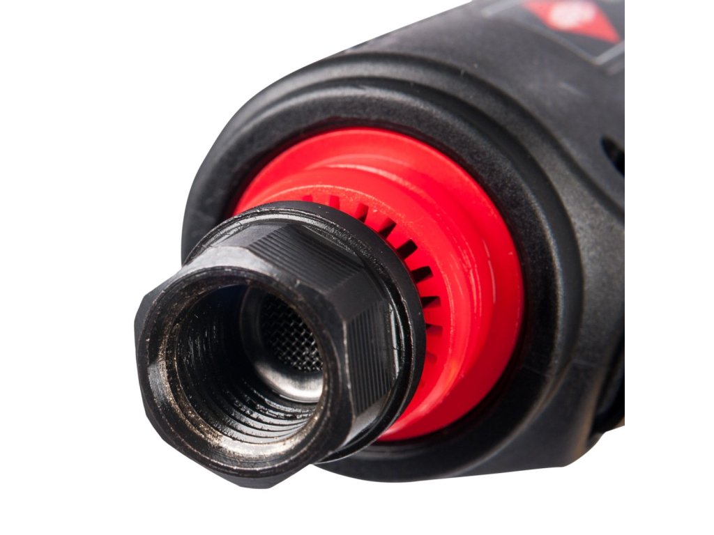 Přístroj pracuje při provozním tlaku 6,2 baru, a jeho průměrná spotřeba vzduchu je 374 l/min, což zajišťuje optimální efektivitu při nízké spotřebě stlačeného vzduchu. Vynikající řešení pro broušení, odhrotování a leštění kovových součástek.
