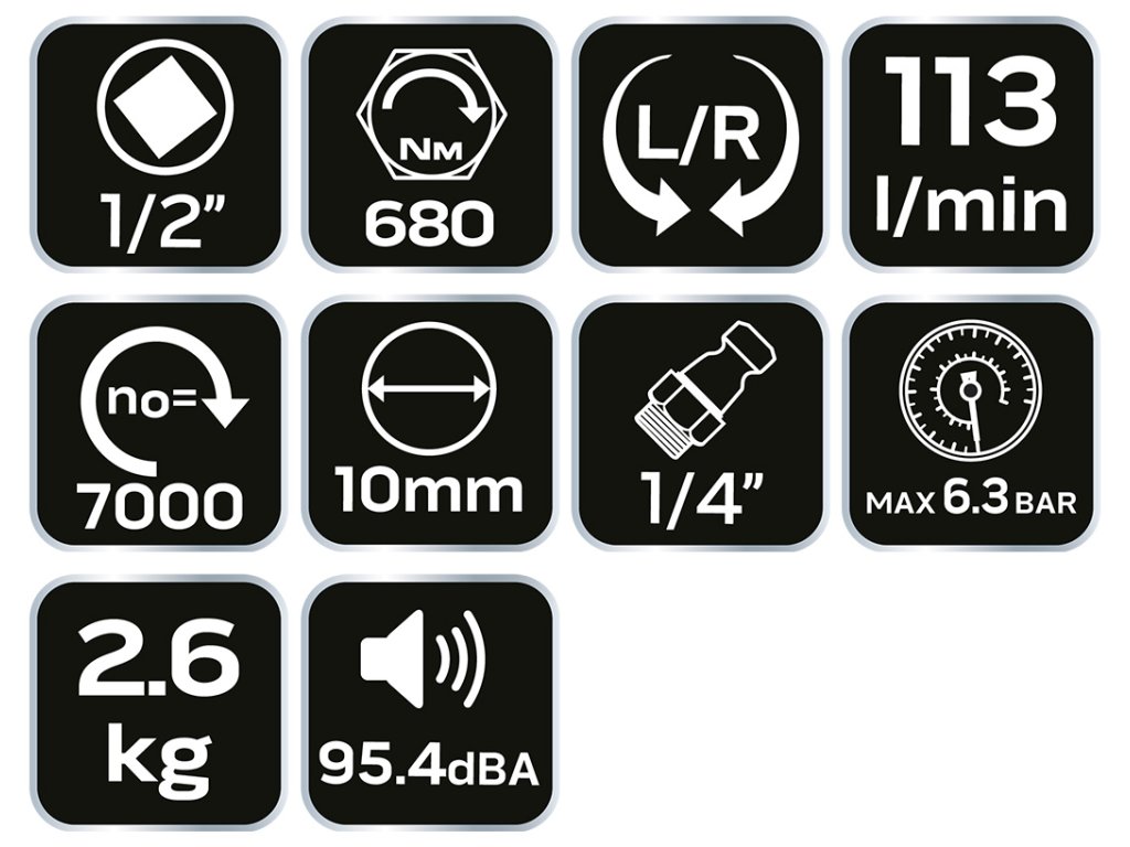 Pneumatický rázový utahovák NEO Tools 1/2" (ref. 14-500). Robustní rázový klíč z oceli. Má pravé/levé nastavení rychlosti a rukojeť odolnou proti mrazu. Maximální kroutící moment 720 Nm. Soulad s evropskými bezpečnostními.