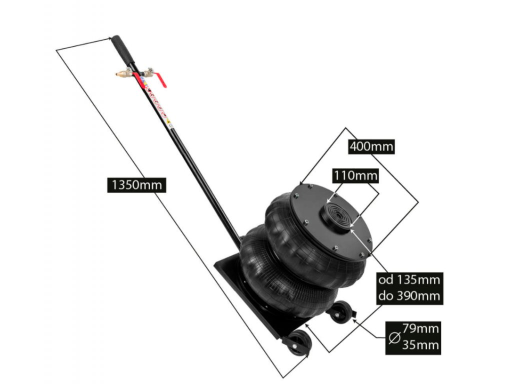 Profesionální pneumaticky měchový zvedák s nosností až 8t bez problémů zvedne většinu osobních a užitkových vozidel. Pevná ocel ale také kvalitní pryžové měchy zaručí, že zvedák vydrží opravdu dlouhou dobu v dílně či pneuservisu. Dlouhá rukojeť usnadňuje manévrování se zvedákem bez ohýbání se. Velká a pevná kola ještě výrazněji pomohou manévrování se zvedákem i na nerovném terénu. Speciální konstrukce umocňuje stabilitu zvedaného vozidla. Ke zvedáku vám zdarma přibalíme i 3cm nádstavec, který umožní zvedání aut o 3 cm výše.