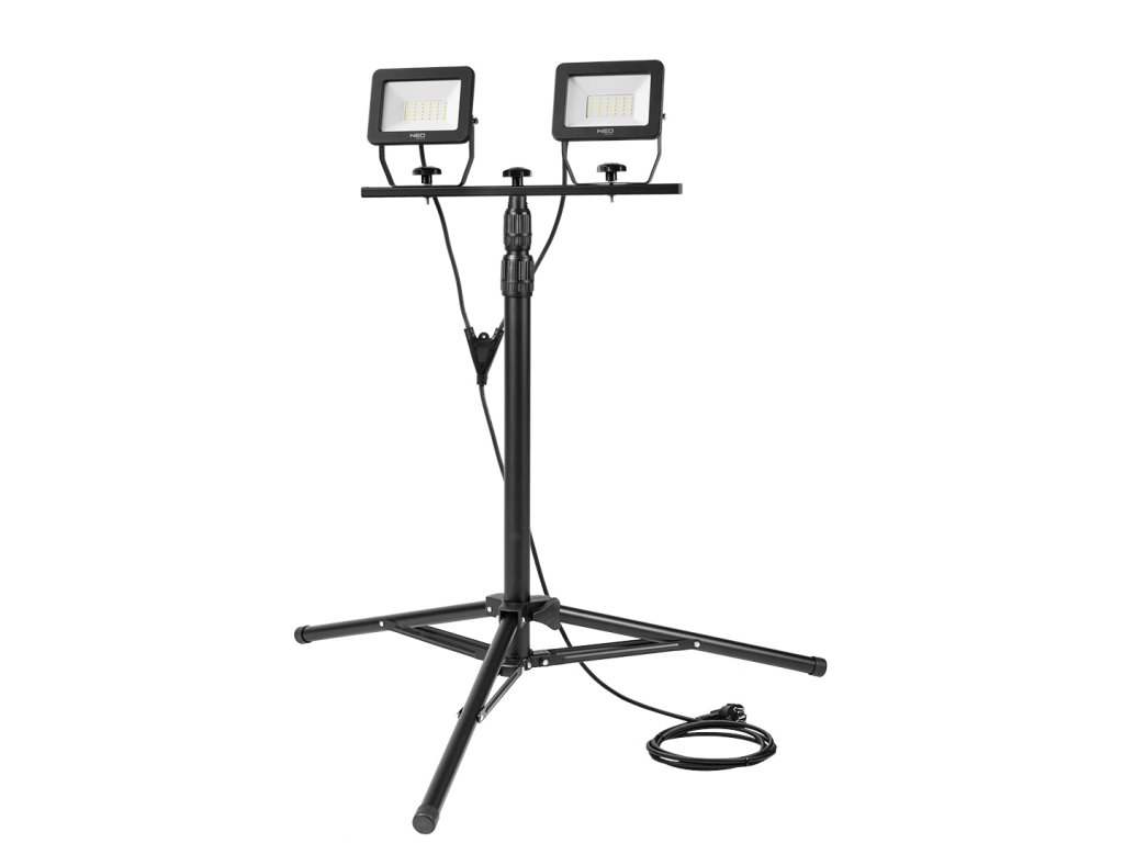Dvojitý stativový reflektor NEO je vybaven LED diodami SMD o výkonu 2 x 30 W a světelným tokem 5400 lumenů. Je určen k použití při opravách a stavebních pracích, jakož i v dílně nebo fotografickém studiu. Osvětlovač je umístěn na stativu s nastavitelnou výškou a směrem světla. Maximální výška je 1,8 m. Tělo je vyrobeno z hliníku. Stupeň krytí IP65 umožňuje použití reflektoru ve venkovním prostředí. Soulad s evropskými bezpečnostními normami potvrzuje certifikát CE.