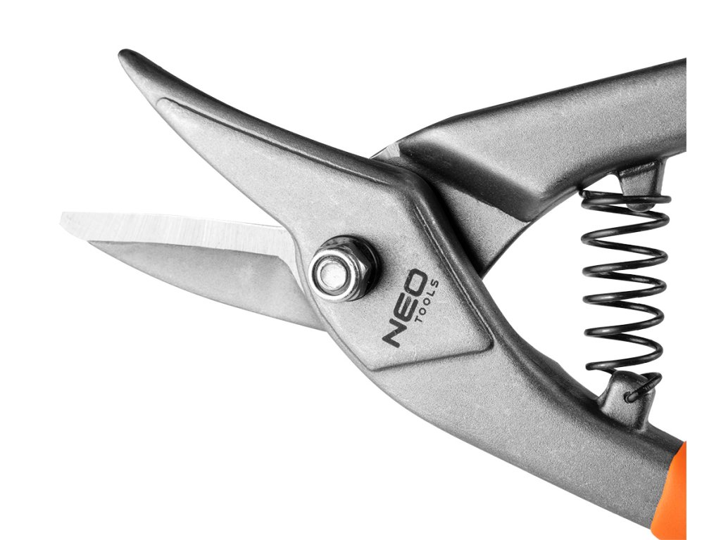 Nůžky na plech, pravé NEO (ref. 31-083) o délce 280 mm jsou určeny pro pokrývačské a plechařské práce. Nůžky jsou vhodné pro rovné i zakřivené řezy. Dokáže řezat ocelové plechy o maximální tloušťce 1,5 mm. Čepele jsou vyrobeny z kvalitní chrom-molybdenové oceli. Pogumované rukojeti na rukojeti zabraňují sklouznutí ruky.