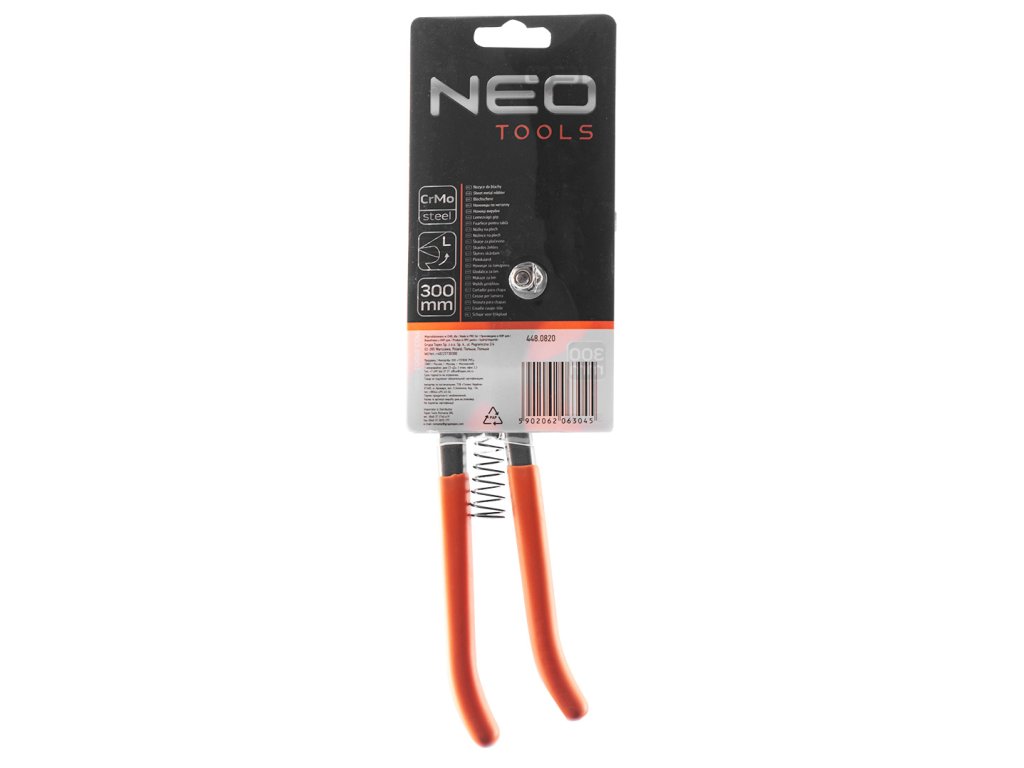Nůžky na plech, levé NEO (ref. 31-086) o délce 300 mm jsou určeny pro pokrývačské a plechařské práce. Nůžky jsou vhodné pro rovné i zakřivené řezy. Dokáží řezat ocelové plechy o maximální tloušťce 1,5 mm. Čepele jsou vyrobeny z kvalitní chrom-molybdenové oceli. Pogumované rukojeti na rukojeti zabraňují sklouznutí rukou.