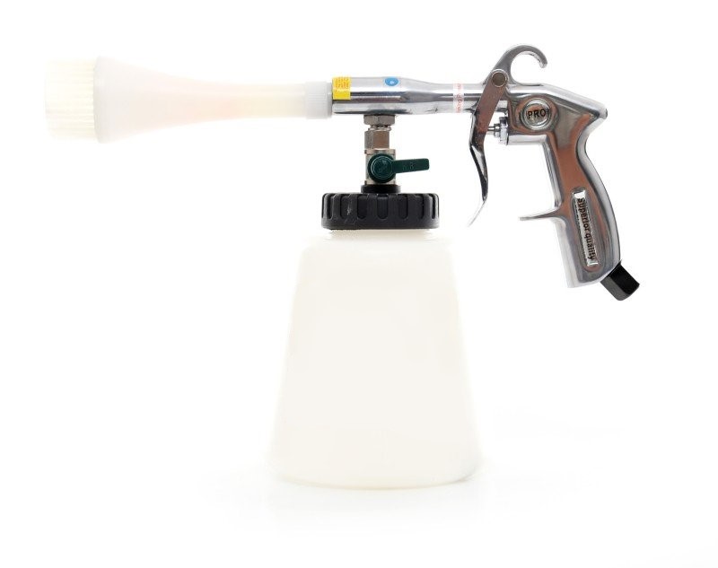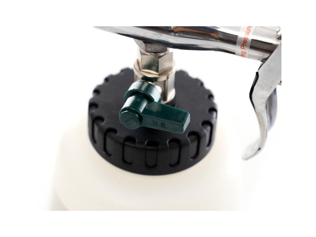 Pneumatická pistole pro mokré čištění karoserie, interiéru a jiných povrchů. Objem 1l. Připojení 1/4". Maximální tlak 8 bar.