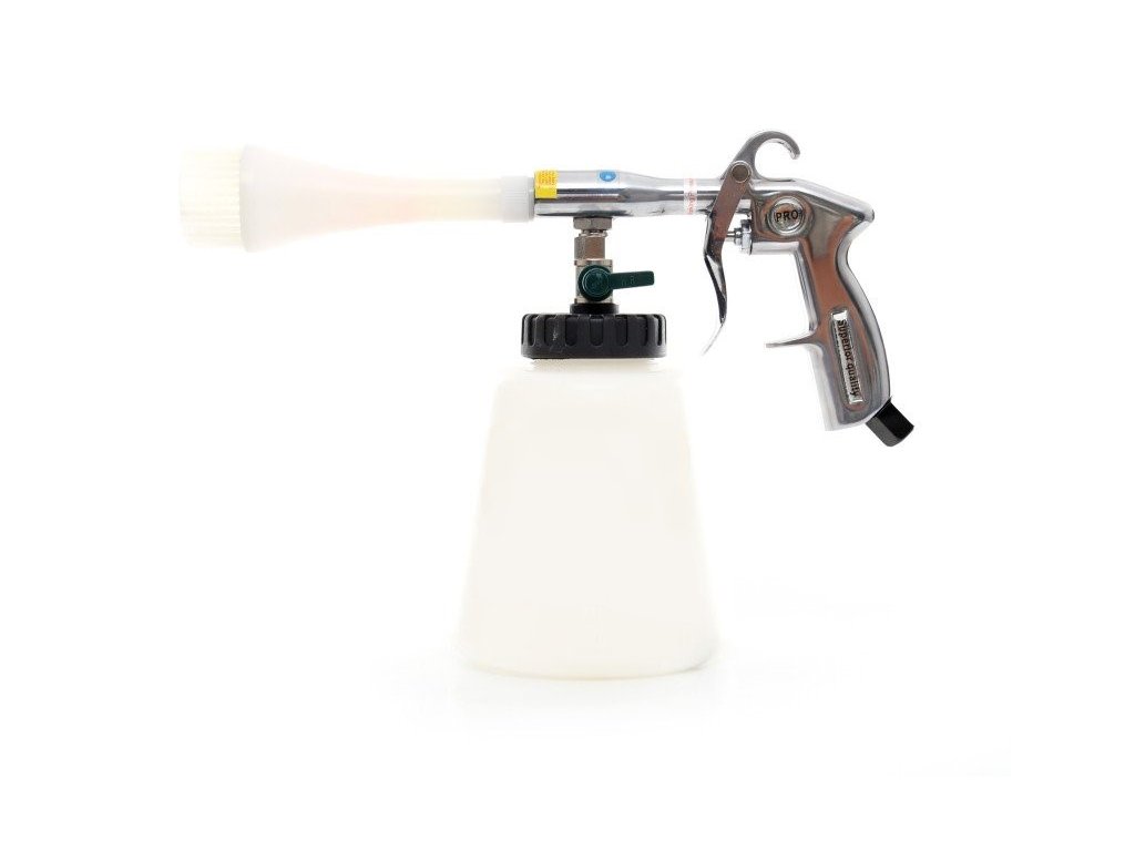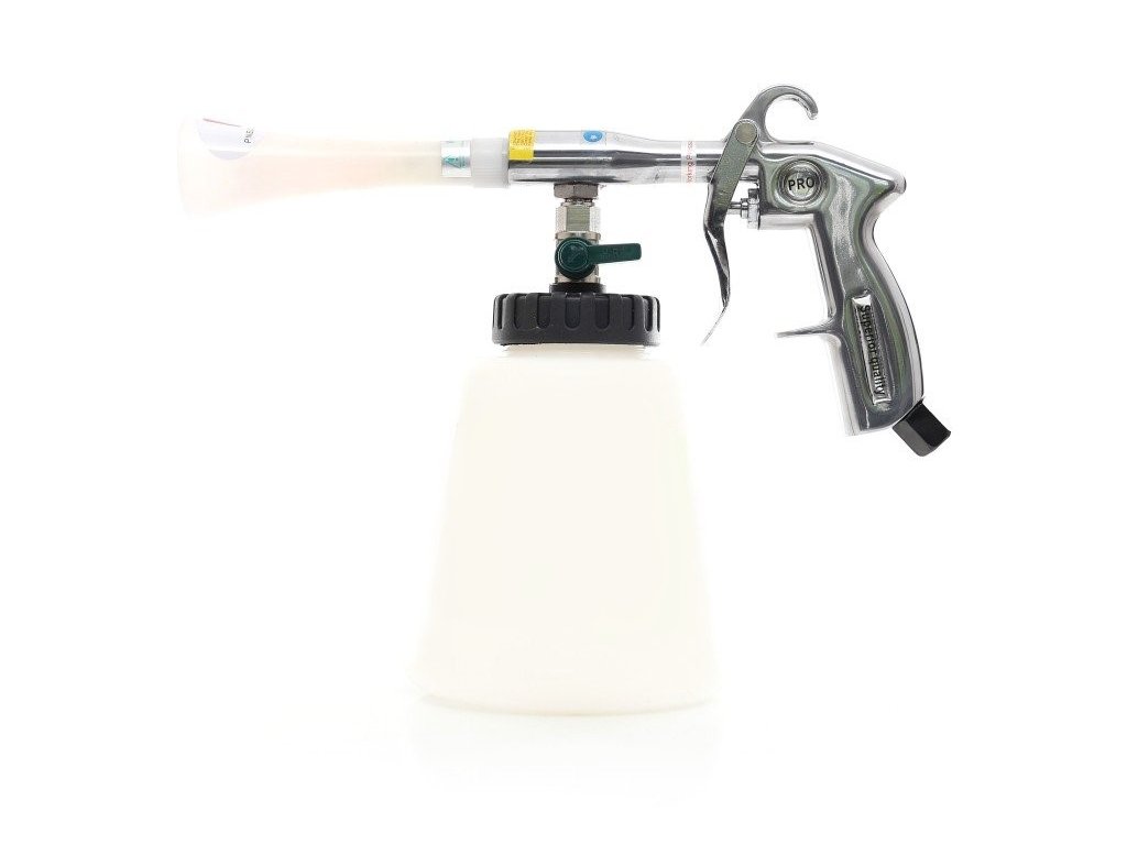 Pistole díky speciálně tvarované trysce s rotujícím jádrem vytváří pod vlivem stlačeného vzduchu pěnivý roztok, který čistí všechny povrchy. Pneumaticka pistole je vysoce efektivní a využívá minimum vody a čisticích prostředků. Dostane se na všechna těžko dostupná místa, štěrbiny, kam se obyčejná houba, hadřík, štětec či štětec nedostane.