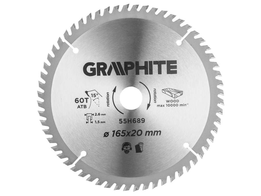 GRAPHITE WIDIA pilový a ponorný kotouč (ref. 55H689) o vnějším průměru 165 mm, vyrobený ze speciální oceli C50 se zvýšenou odolností proti opotřebení a deformaci. Zuby z karbidu wolframu s geometrií ATB (střídavou) umožňují přesné řezání dřeva a materiálů na bázi dřeva, jako jsou překližka, dřevotřískové desky, MDF. Přiložené redukční kroužky umožňují použití čepele s většinou modelů pil. Značka GRAPHITE nabízí široký sortiment elektrického nářadí, které splňuje potřeby profesionálů.