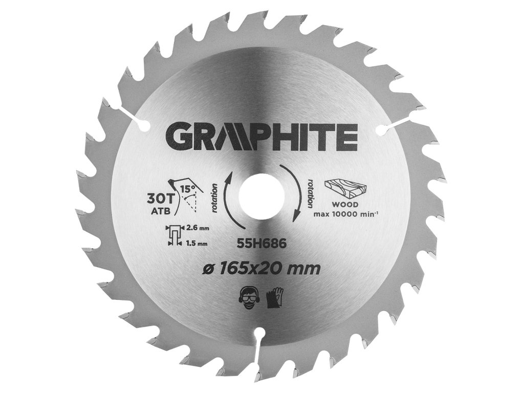 GRAPHITE WIDIA pilový a ponorný kotouč (ref. 55H686) Vnější průměr 165 mm, vyrobený ze speciální oceli C50 se zvýšenou odolností proti opotřebení a deformaci. Zuby z karbidu wolframu s geometrií ATB (střídavou) umožňují přesné řezání dřeva a materiálů na bázi dřeva, jako jsou překližka, dřevotřískové desky, MDF. Přiložené redukční kroužky umožňují použití čepele s většinou modelů pil. Značka GRAPHITE nabízí široký sortiment elektrického nářadí, které splňuje potřeby profesionálů.