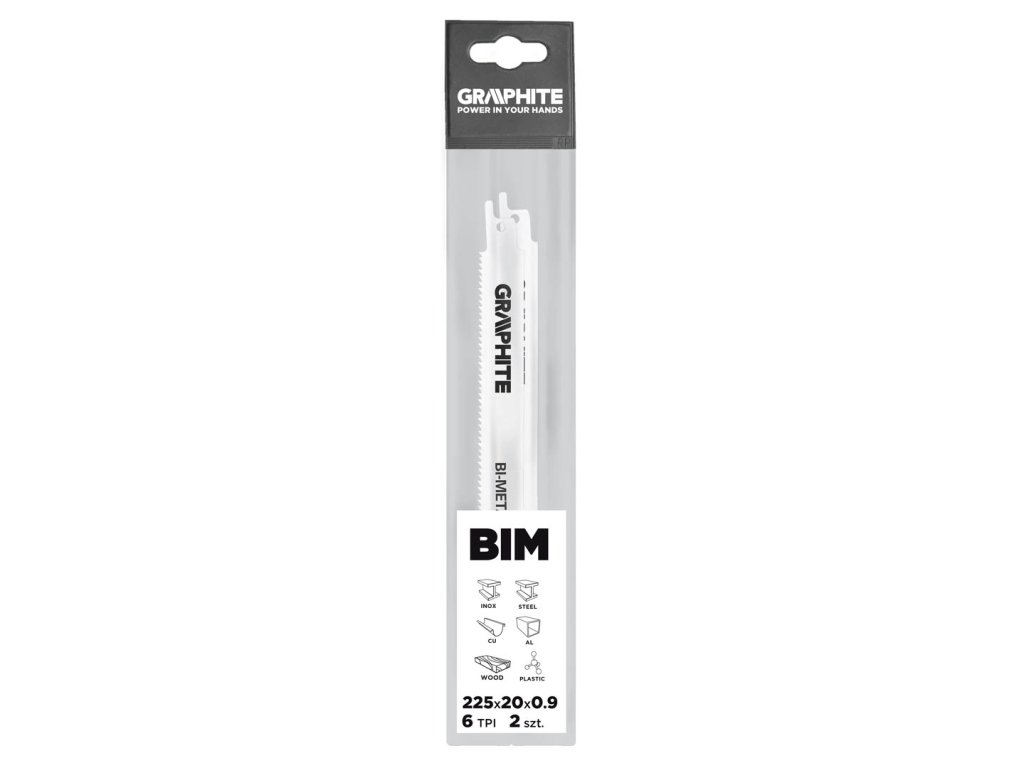 Bajonetové čepele GRAPHITE mají zuby z rychlořezné oceli. Díky kombinaci vysoké rychlosti oceli s chrom-vanadiovou ocelí, jsou čepele vhodné pro řezání všech prvků z oceli, nerezu, plastu, dřeva. Kombinace těchto dvou typů ocelových čepelí poskytuje vyjímečnou flexibilitu, která umožňuje pracovat s ohnutou čepelí. To dává možnost řezání v obtížně přístupných místech.