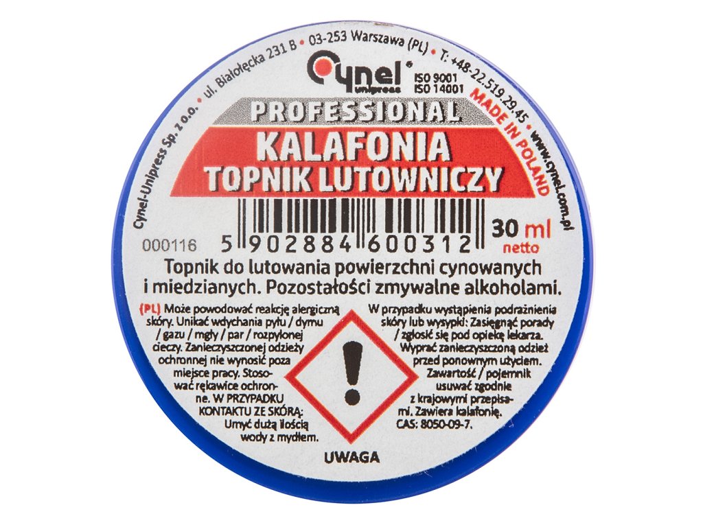 Kolofonie CYNEL (ref. 44E812) 30 ml. Kolofonie pájky je základní tavidlo používané v elektronice Vyrobeno z borové pryskyřice.
