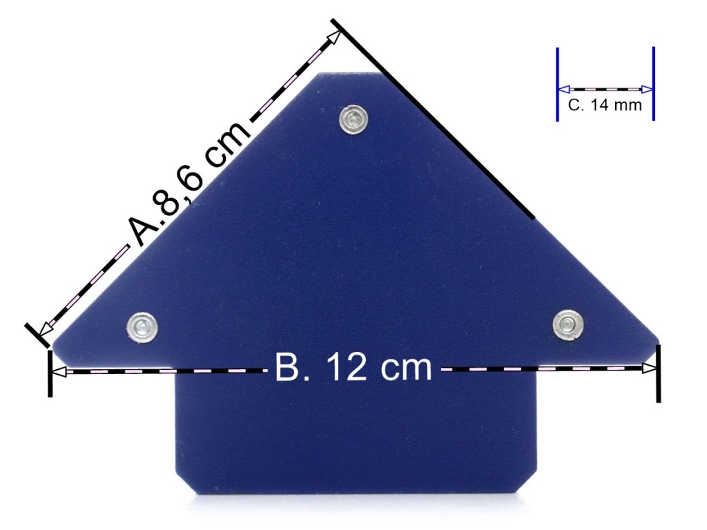 Úhelník je užitečný při svařování, montáži kovových prvků, pájení, trasování a případně zvedání ocelových prvků. Silný magnet s velkou plochou obalený kovovými plotýnkami, který umožňuje přesné a trvalé umístění materiálu pod úhlem 45, 90 nebo 135 stupňů a díky velké přitahovací síle zajišťuje stabilní, nepohyblivou polohu.