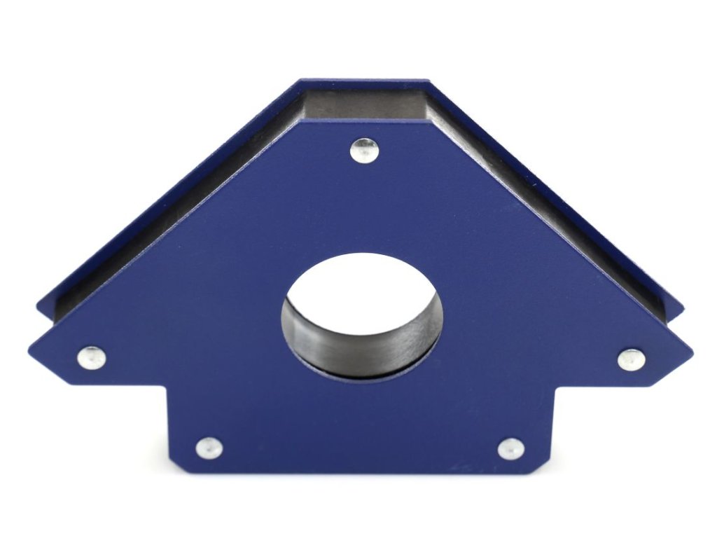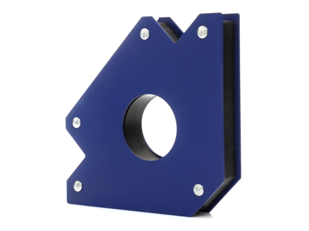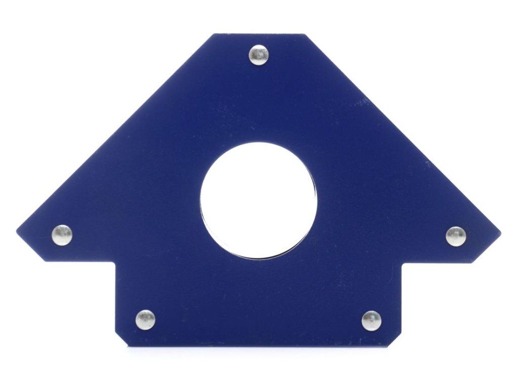 Úhelník je užitečný při svařování, montáži kovových prvků, pájení, trasování a případně zvedání ocelových prvků. Silný magnet s velkou plochou obalený kovovými plotýnkami, který umožňuje přesné a trvalé umístění materiálu pod úhlem 45, 90 nebo 135 stupňů a díky velké přitahovací síle zajistí stabilní, nepohyblivou polohu.