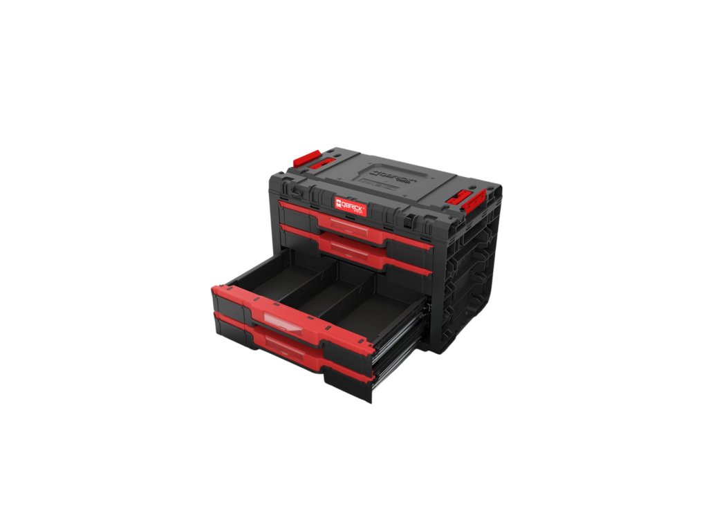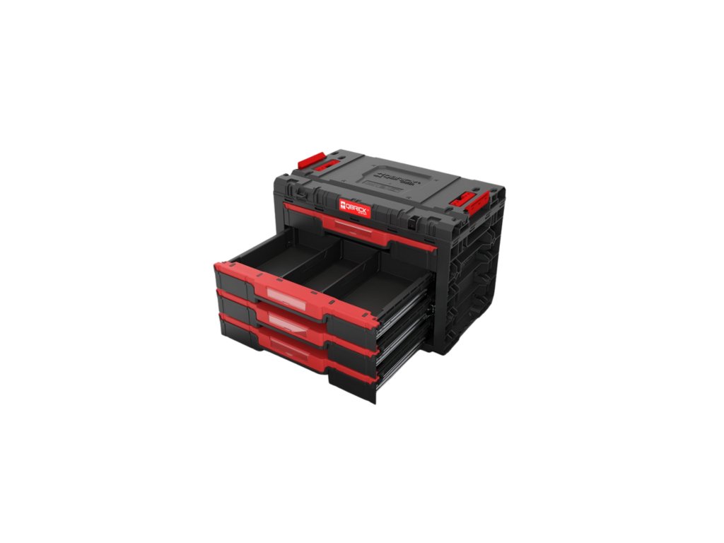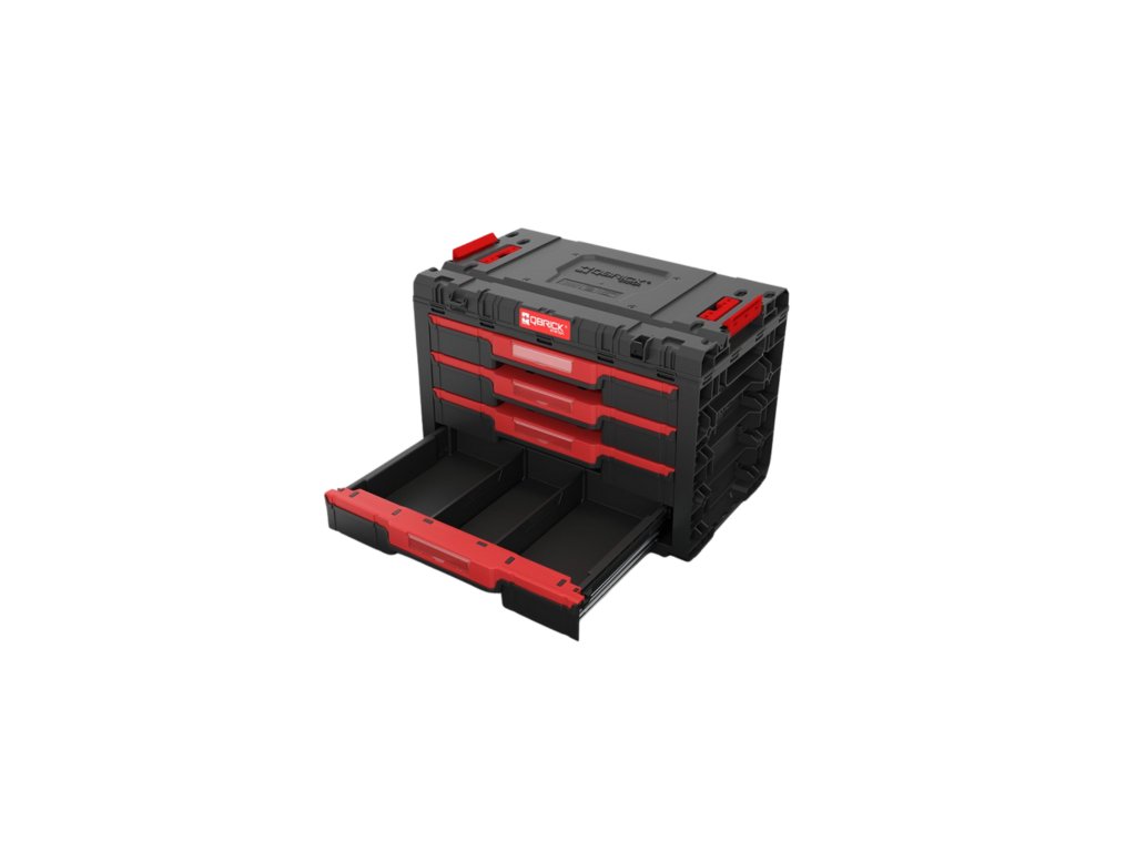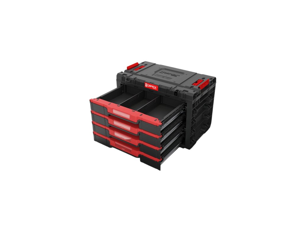 Box na nářadí Qbrick System PRIME Drawer 4 Toolbox - prostorný modulární box se 4 zásuvkami na kovových lištách, každá 5,3 ls nastavitelnými přepážkami.