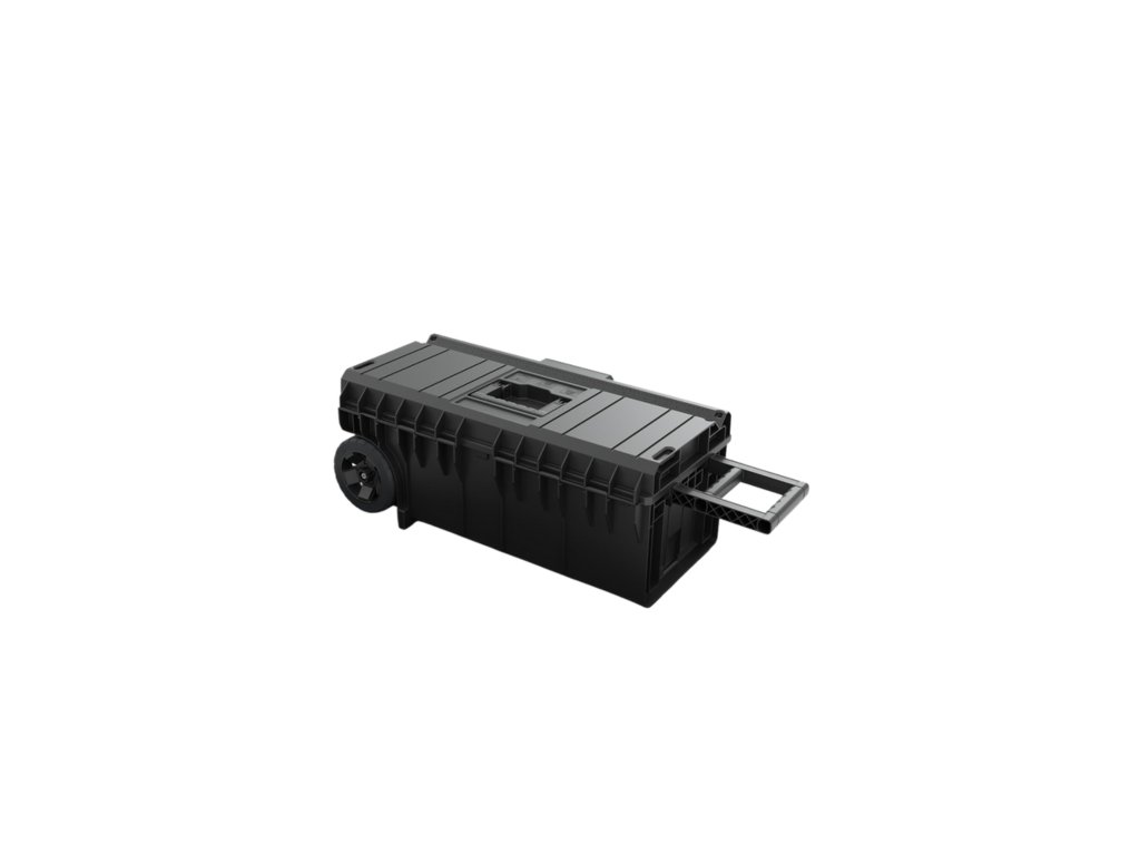 Tento mobilní box na nářadí umožňuje přepravu dlouhého elektrického nářadí, jako jsou příklepová kladiva, úhlové brusky nebo míchadla na cement, a to včetně potřebného příslušenství.