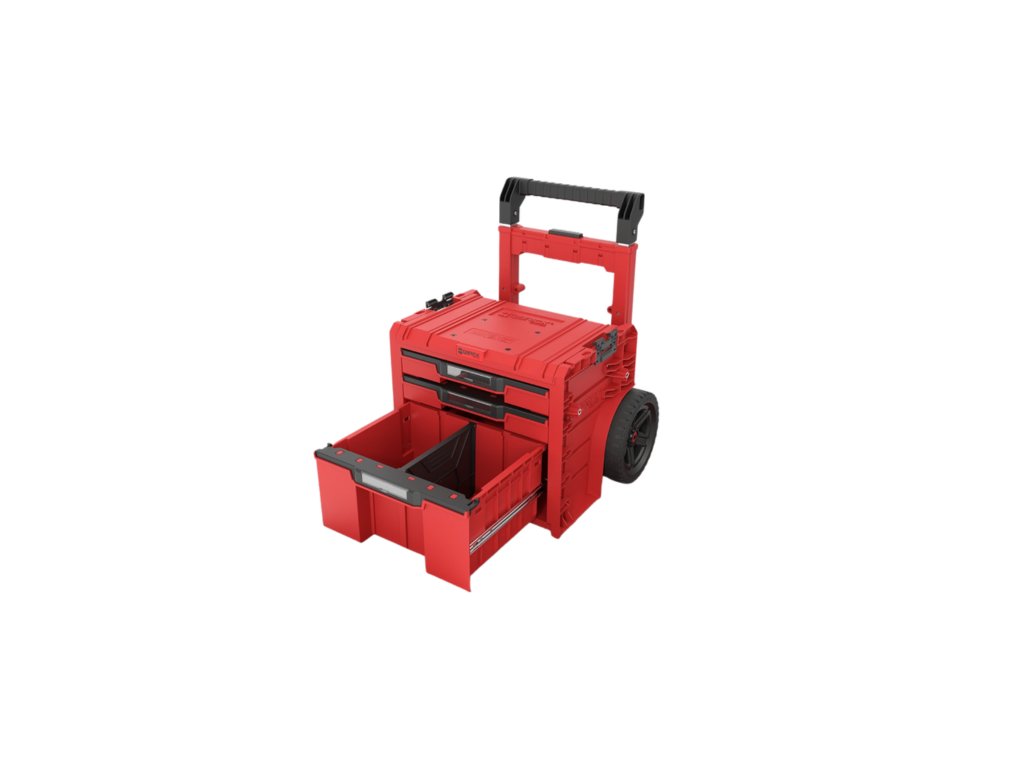 Qbrick System PRO Cart 2.0 Plus Drawer 3 RED Ultra HD je mobilní box na kolečkách vybavený zásuvkami. Disponuje dvojitou teleskopickou rukojetí s možností demontáže a praktickým nášlapem pro pevný úchop a snadné manévrování i v menších prostorách.