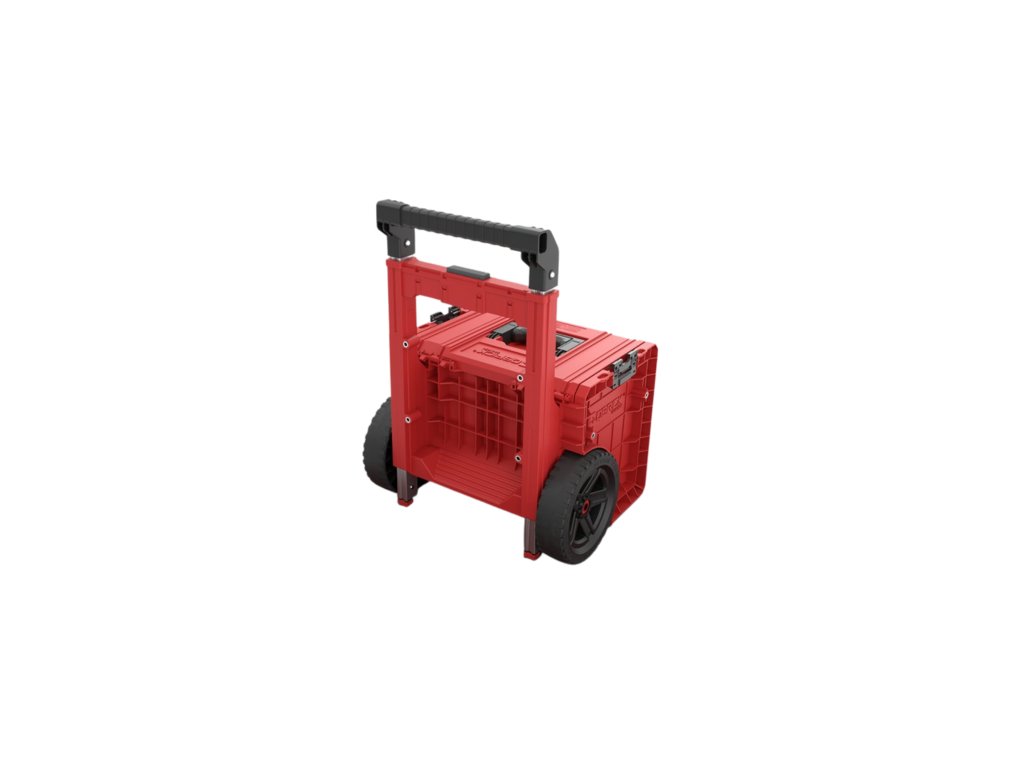 Model Qbrick System PRO Cart 2.0 Plus RED Ultra HD Custom je mobilní box na nářadí na kolečkách. Je vybavený dvojitou teleskopickou rukojetí s možností demontáže a stabilním nášlapným podstavcem, který umožňuje pevný úchop a snadné manévrování i ve stísněných prostorech.