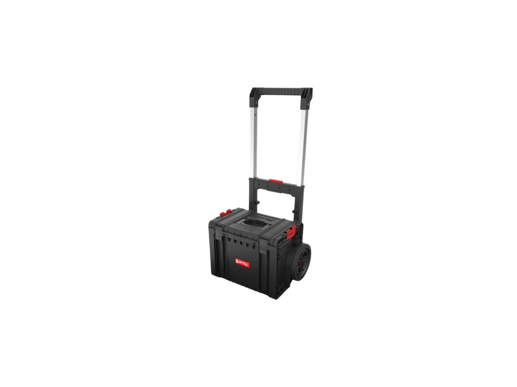 Qbrick System PRO Cart 2.0 Plus je odolný mobilní box na nářadí, navržený pro snadný transport i v náročném terénu. Díky velkým 9" gumovým kolům o šířce téměř 6 cm umožňuje plynulý a stabilní pohyb i na nerovném povrchu. Dvojitá teleskopická rukojeť s možností demontáže a praktická opěrka pro nohu zajišťují pohodlnou manipulaci i ve stísněných prostorech.
