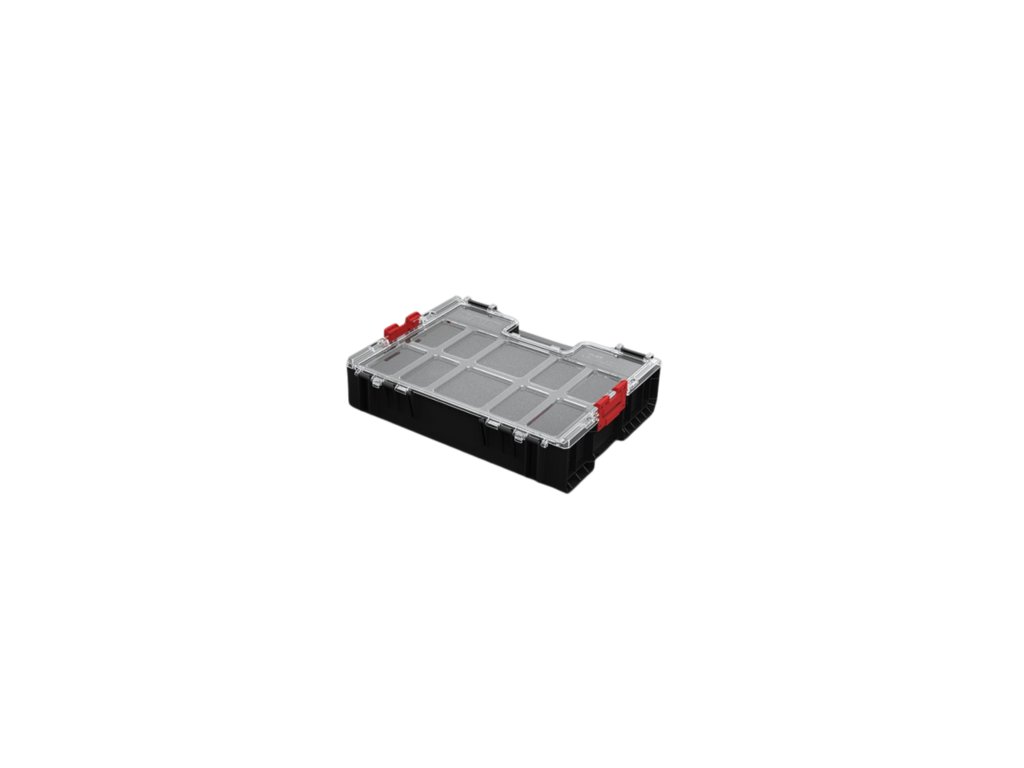 Qbrick System PRO Organizer 300 Multilayer Foam Inserts je největší organizér ze série PRO. Kromě řešení známých z jiných modelů – jako je patentovaný Easy Access System, těsnění ve víku, mimořádně odolné polykarbonátové víko, boční polyamidové konektory, přední uzávěry a robustní madlo – nabízí především hlubší korpus, díky čemuž je ještě prostornější a praktičtější.