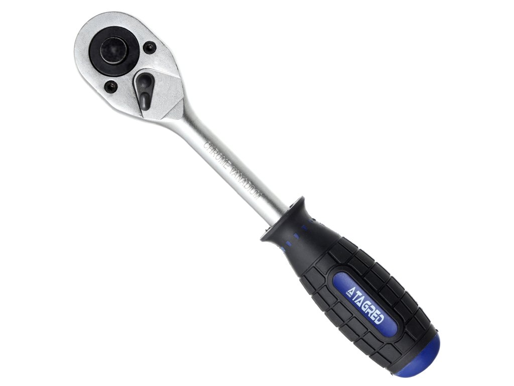 Rýhovaná rukojeť ráčny vyrobená z vysoce kvalitního materiálu zajišťuje jistý a pevný úchop ráčny! Náš nástrčný klíč má mechanismus s 24 silnými zuby, který přenáší velký moment na čtvercový profil, přepínač otáčení P/L umístěný v hlavě a tlačítko pro uvolnění nástrčného klíče. Saténová povrchová úprava výrazně zlepšuje estetiku a co je nejdůležitější, usnadňuje udržování čistoty.