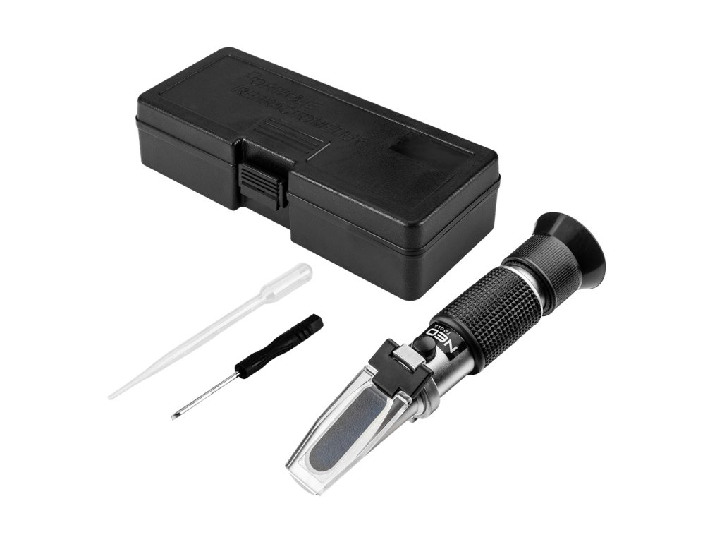 NEO 11-270 Refraktometr pro testování chladicí kapaliny, elektrolytu a kapaliny do ostřikovačů. Pomocí refraktometru může uživatel snadno a rychle otestovat kvalitu kapaliny chladiče, kapaliny do ostřikovačů a elektrolytu baterie. Výrobek je uložen v praktické krabičce.