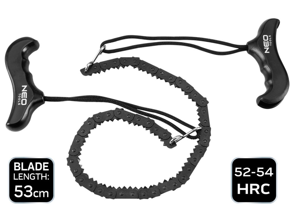 Ruční řetězová pila o délce čepele 53cm je vyrobena z manganové oceli s vysokou tvrdostí, prakticky využitelná v každé situaci. Bude spolehlivým společníkem při práci na pozemku, v zahradě či při přežití v přírodě. S tvrdostí 52-52 HRC a odolnou manganovou ocelí je připravena pro náročné úkoly.