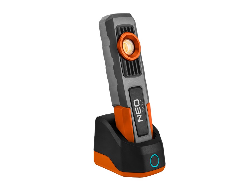 Barevná lampa 2 v 1+ stanice a nabíječka 99-098 od společnosti NEO vybavená LED diodou: COB a UV diodou. Má index podání barev CRI>90 a vyznačuje se následujícími funkcemi: COB teplá - COB přirozená - COB studená - TOP UV LED-OFF, přičemž maximální výstupní výkony jsou: 380 lumenů (teplý) / 350 lumenů (přirozený) / 390 lumenů (studený). Na druhé straně, provozní doba se odhaduje na 4 až 4,5 hodiny v závislosti na zvoleném režimu. Svítilna je vybavena 3,7 V baterií s kapacitou 4000 mAh a 5 V napájením 1 A. Vestavěný nabíjecí port typu C umožňuje úplné nabití zařízení za 5 hodin. Lampa pro porovnávání barev laku automobilů pod přirozeným a UV světlem bude nezbytnou výbavou každé karosárny. Užije se iv případě úniku chladicí kapaliny, pokud se předtím použije správně dopované chladivo. Přístroj má stupeň vodotěsnosti IP67. Jeho rozměry jsou 185 x 50 x 32 mm a hmotnost (bez základny) je 245 g. Svítilna se nabízí se stanicí, nabíječkou, háčkem a magnetem na základnu. Doporučuje se pro profesionály i pro kutily.