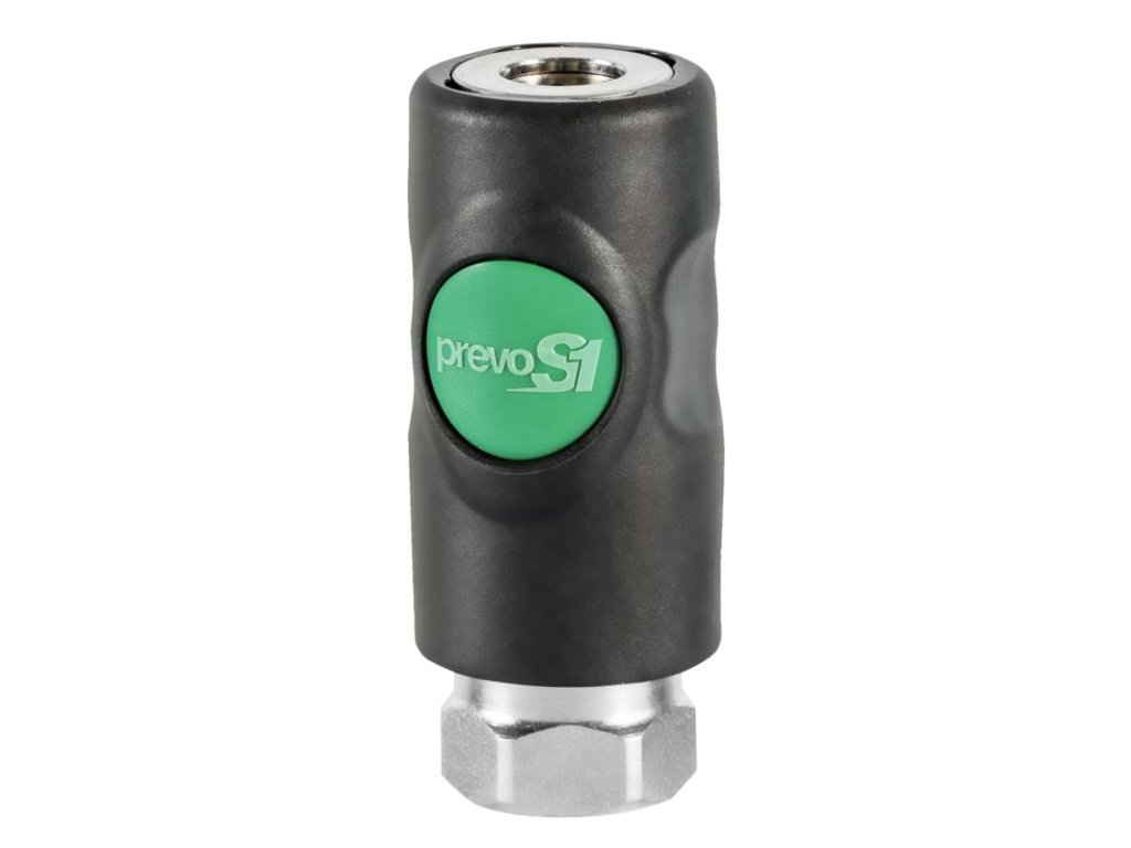 Rychlospojka PREVOST S1 – 3/8" vnitřní závit Kvalitní rychlospojka renomované značky PREVOST, model S1, s vnitřním závitem 3/8". Vyrobeno z odolného kompozitního materiálu s vynikající odolností proti mechanickému poškození. Průtok: 1820 l/min. Záruka: 3 roky. Spojkový systém PREVOST S1 nabízí vynikající bezpečnost, výkon a kvalitu ideální pro náročné pneumatické aplikace.