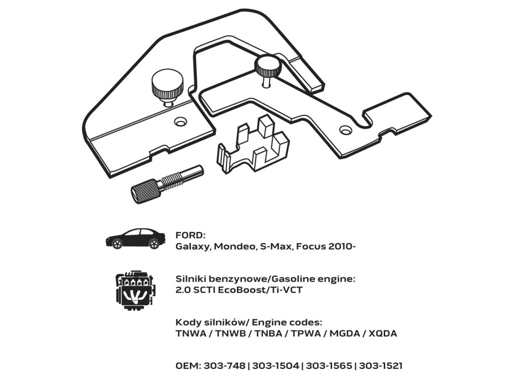 FORD:Galaxy, Mondeo, S-Max, Focus 2010-Benzinové motory/Benzínový motor:2.0 SCTI EcoBoost/Ti-VCTEngine kódy:TNWA / TNWB / TNBA / TPWA / MGDA / XQDAOEM: 303-748 | 303-1504 | 303-1565 | 303-1521