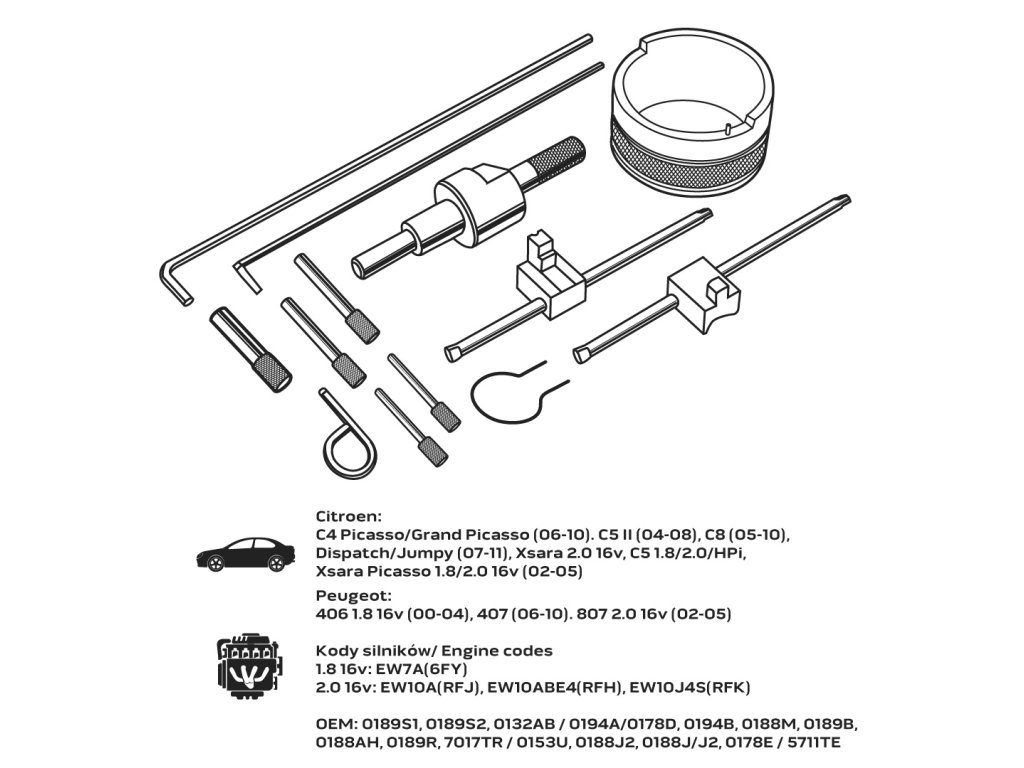 Citroen: C4 Picasso/Grand Picasso (06-10). C5 II (04-08), C8 (05-10), Dispatch/Jumpy (07-11), Xsara 2.0 16v, C5 1.8/2.0/HPi, Xsara Picasso 1.8/2.0 16v (02-05) Peugeot:406 1. (06-10). 807 2.0 16v (02-05) Kódy motorů1.8 16v: EW7A(6FY) 2.0 16v: EW10A(RFJ), EW10ABE4(RFH), EW10J4S(RFK)OEM: 0189S1, 018 0194A/0178D, 0194B, 0188M, 0189B, 0188AH, 0189R, 7017TR/0153U, 0188J2, 0188J/J2, 0178E/5711TE