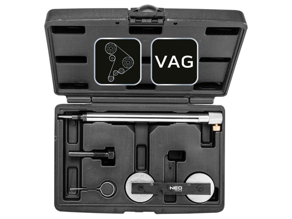 Sada rozvodových zámků pro benzinové motory koncernu VAG NEO je sada nástrojů pro blokování rozvodových kol v automobilech koncernu VAG. Souprava obsahuje prvky pro blokování rozvodového kola v benzinových motorech. Poskytuje základní nástroje pro nastavení a blokování motoru. Souprava je zabalena v kufříku.