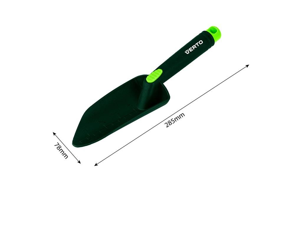 Široká plastová špachtle 15G414 od společnosti VERTO je nástroj vyrobený z odolného plastu. Její celková délka je 285 mm a hmotnost 71 g.