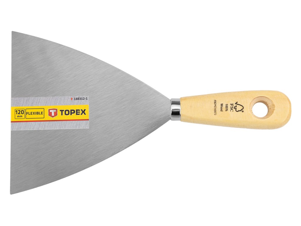 Malířská špachtle 120 mm 18B312-1 od společnosti TOPEX je nástroj, který se vyznačuje šířkou 120 mm. Je vybaven praktickou rukojetí ze dřeva. Tmel TOPEX se osvědčí při mnoha úkolech.