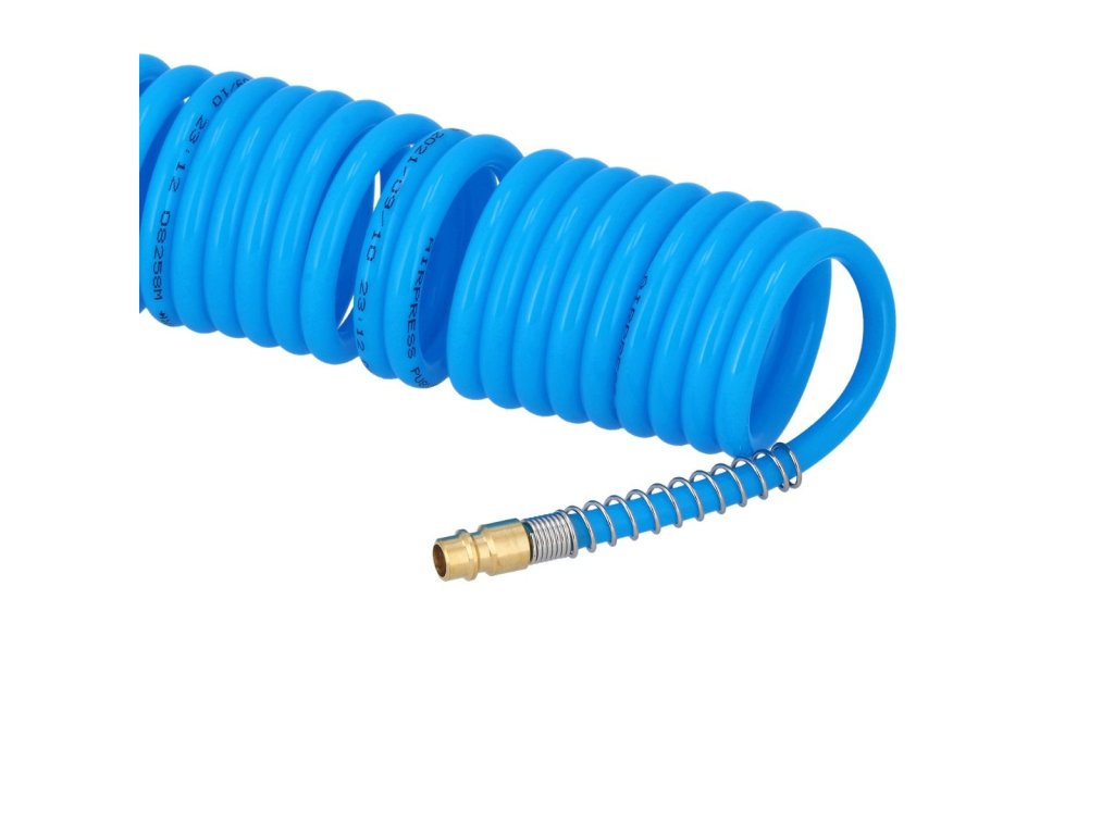 Spirální pneumatická hadice PU s armaturou o délce 15 m je vynikající volba pro profesionály, kteří potřebují odolnou