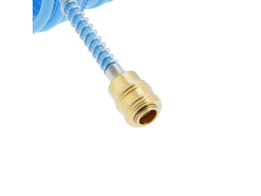 Spirální pneumatická hadice PU s armaturou 15 m fi 8 x 5 mm Spirální pneumatická hadice o délce 15 metrů, vyrobena z odolného polyuretanu (PU)