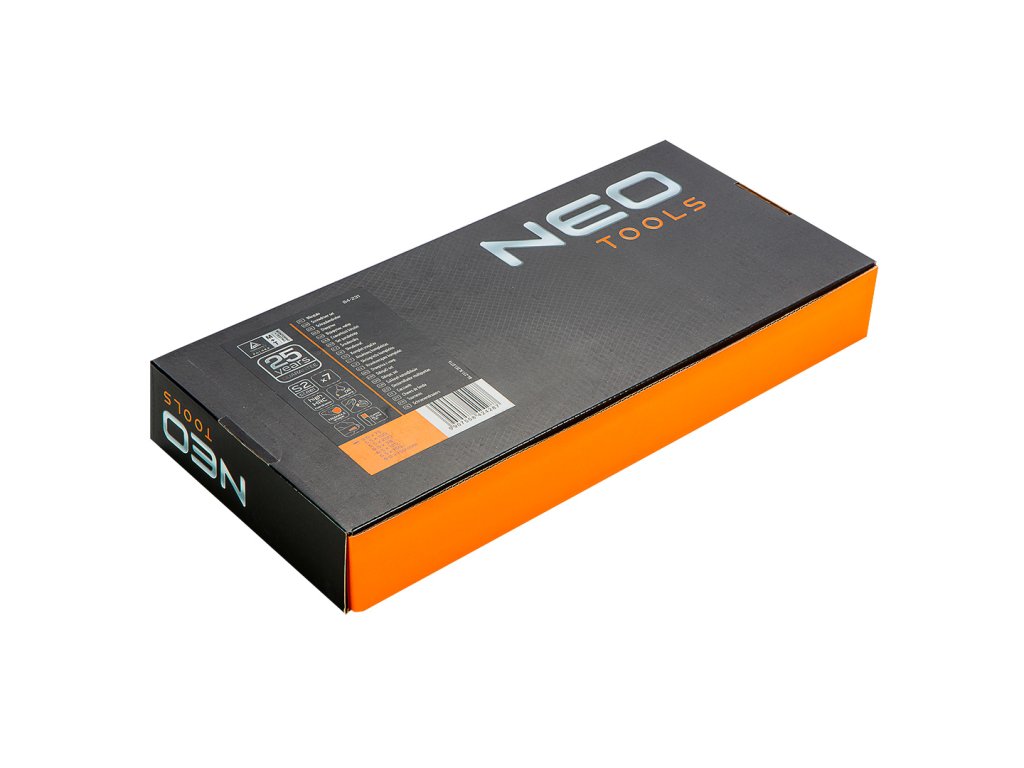 Ploché šroubováky NEO (ref. 84-231) Čepel šroubováků je vyrobena z mimořádně odolné oceli S2. Pracovní konce čepele byly tepelně zpracovány, díky čemuž bylo dosaženo přiměřené tvrdosti a odolnosti proti ohybu 56 HRC. Šroubováky mají magnetické zesílené hroty. Trojúhelníkový tvar rukojeti s profilovanou opěrkou palce snižuje zatížení ruky během práce a usnadňuje dosažení optimálního točivého momentu. Rukojeť z dvojitého materiálu zabraňuje klouzání v ruce a je odolná vůči chemikáliím, olejům a tukům. Nářadí se dodává v praktickém plastovém výlisku, který se hodí do zásuvek skříní na nářadí NEO 84-221 a 84-222. Kvalitu nářadí potvrzuje certifikát TÜV a 25letá záruka výrobce. Značka NEO splňuje očekávání profesionálů.