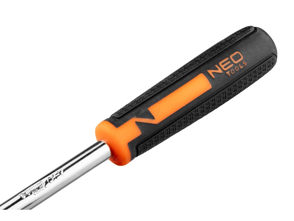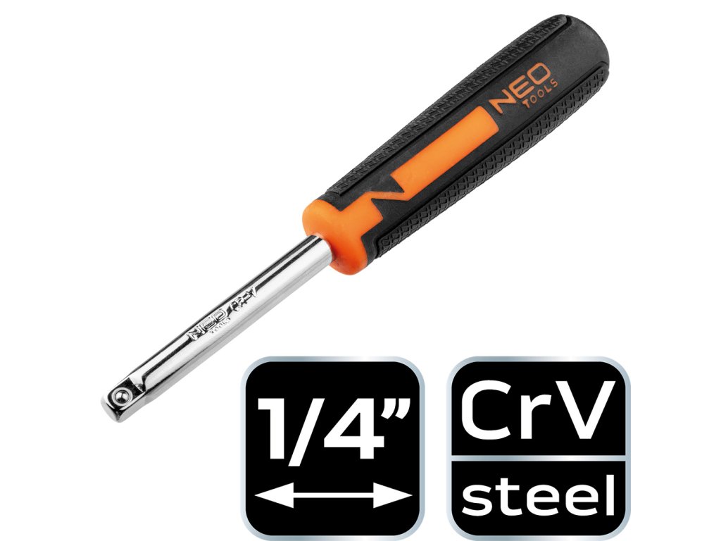Šroubovák na ořechy 1/4" 08-257 od společnosti NEO je nástroj z chrom-vanadové oceli s rukojetí ze dvou materiálů pro bezpečné uchopení. Velikost jeho hnacího čtyřhranu je1/4". Klíč má v rukojeti 1/4" čtvercový otvor pro montáž ráčny, prodlužovačky a pohonu s rukojetí T. Užitečná v dílnách a servisech. Značka NEO splňuje očekávání profesionálů.