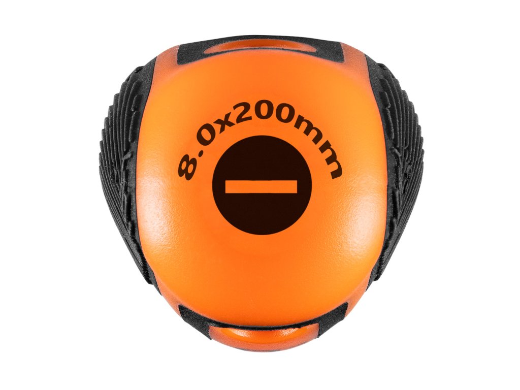 Plochý šroubovák NEO (ref. 04-176) 8 x 200 mm. Čepel je vyrobena z odolné chrom-vanadiové oceli, což zaručuje dlouhou životnost nástroje. Magnetický hrot z kalené oceli usnadňuje práci s nástrojem. Ergonomická plastová rukojeť pokrytá protiskluzovým materiálem zajišťuje bezpečnost a pohodlí při práci. Značka NEO splňuje očekávání profesionálů.