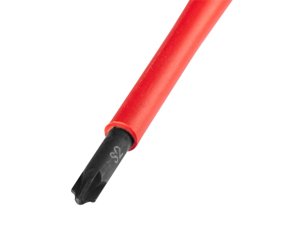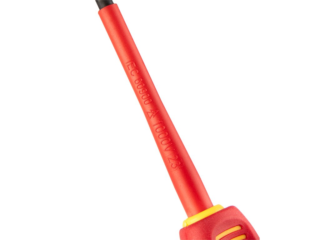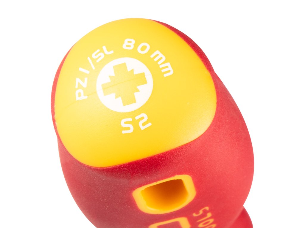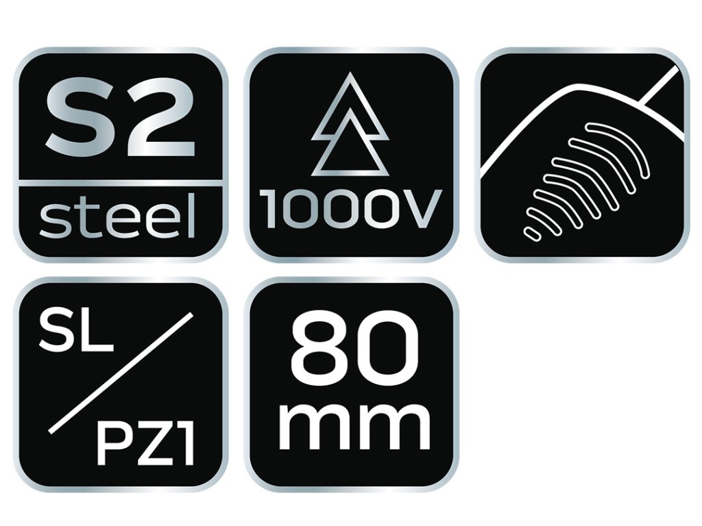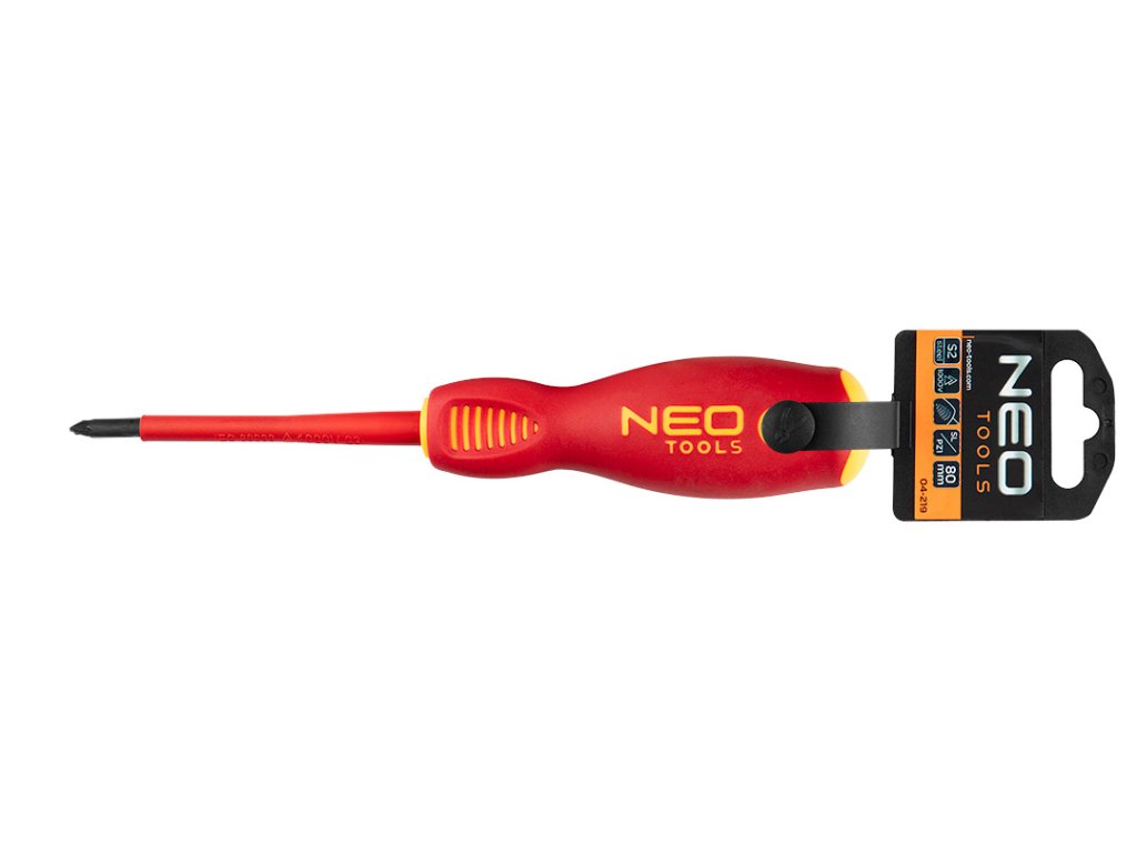 Šroubovák plus-minus 1000 V, SL/PZ1 x 80 mm 04-219 od společnosti NEO je nástroj certifikovaný pro práci pod napětím do 1000 V. Čepel šroubováku je vyrobena z odolné oceli S2. Pracovní hrot čepele byl tepelně upraven, což má za následek přiměřenou tvrdost a odolnost vůči ohybu. Specializovaný hrot má velikost SL/PZ1 a délku 80 mm. Trojúhelníkový tvar rukojeti s tvarovanou opěrkou pro palec snižuje namáhání ruky při práci a usnadňuje dosažení optimálního točivého momentu. Rukojeť ze dvou materiálů zabraňuje klouzání v ruce a je odolná vůči chemikáliím, olejům a tukům. Kvalita nářadí potvrzená certifikací VDE.