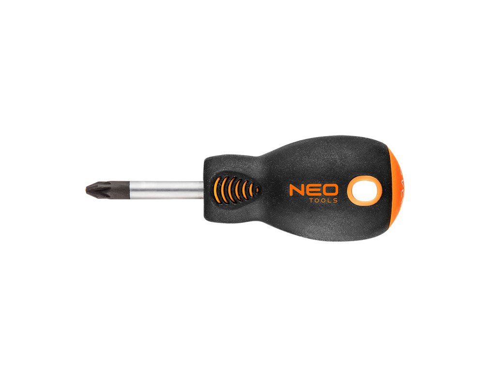 Šroubovák NEO s křížovou hlavou PZ (ref. 04-033) o rozměrech PZ2 x 38 mm. Čepel šroubováku je vyrobena z mimořádně odolné oceli S2. Pracovní hrot šroubováku byl tepelně zpracován, díky čemuž bylo dosaženo přiměřené tvrdosti a odolnosti proti ohybu 56 HRC. Šroubovák má magnetický hrot. Trojúhelníkový tvar rukojeti s profilovanou opěrkou palce snižuje zatížení ruky během práce a usnadňuje dosažení optimálního točivého momentu. Rukojeť ze dvou materiálů zabraňuje klouzání v ruce a je odolná vůči chemikáliím, olejům a tukům. Kvalitu nástroje potvrzuje certifikát TÜV a 25letá záruka výrobce. Značka NEO splňuje očekávání profesionálů.