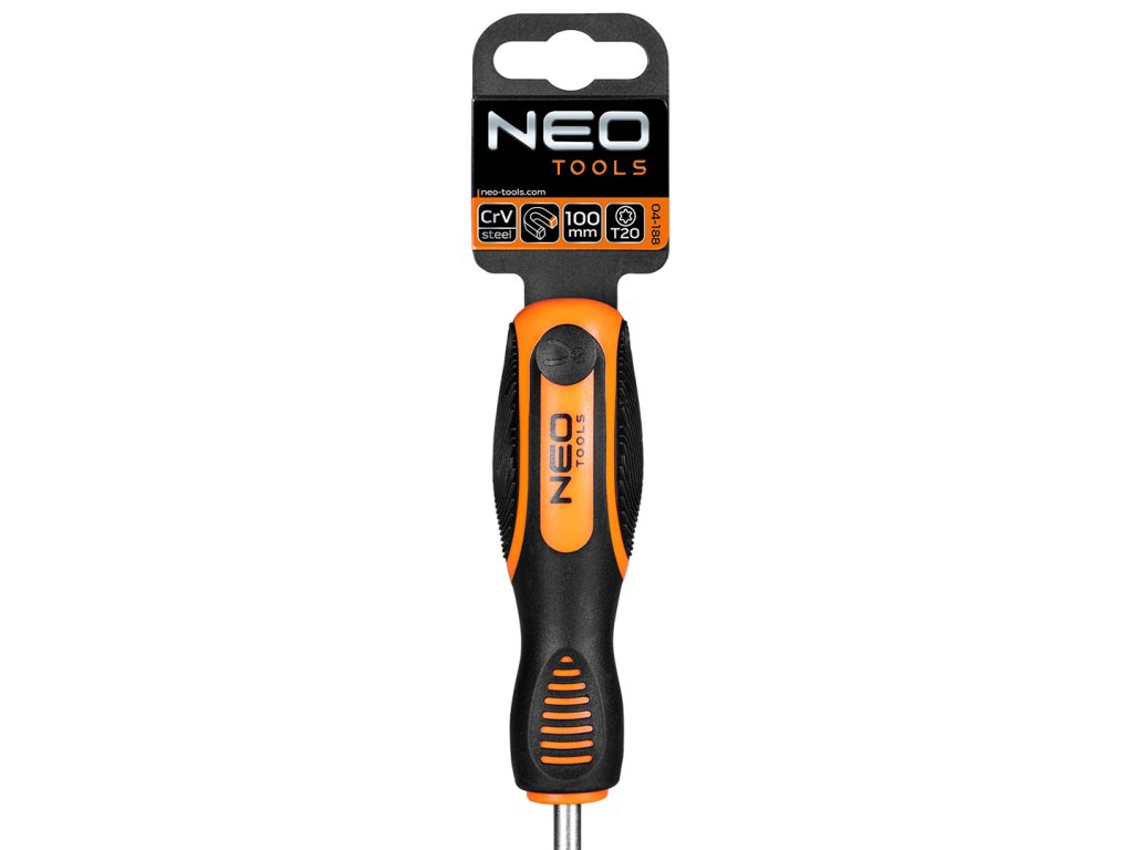 Šroubovák NEO Torx (ref. 04-188) užitečný při mechanických pracích a kutilství. Čepel o délce 100 mm je vyrobena z odolné chrom-vanadiové oceli, což zaručuje dlouhou životnost nástroje. Magnetický hrot T20 z kalené oceli usnadňuje používání nástroje. Ergonomická plastová rukojeť pokrytá protiskluzovým materiálem zajišťuje bezpečnost a pohodlí při práci. Značka NEO splňuje očekávání profesionálů.