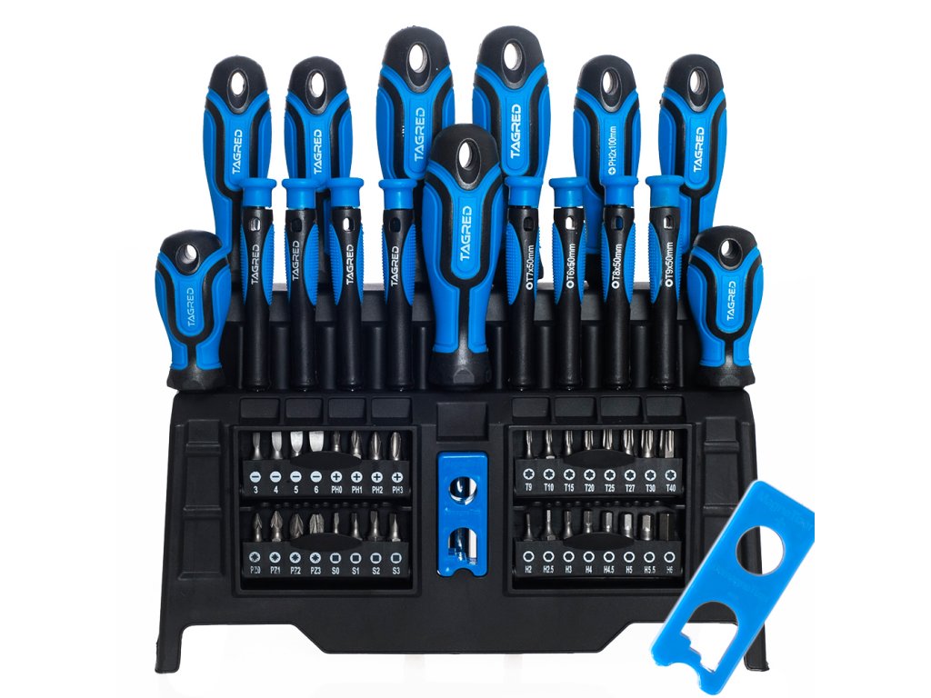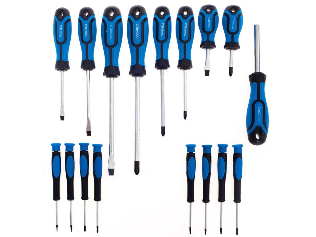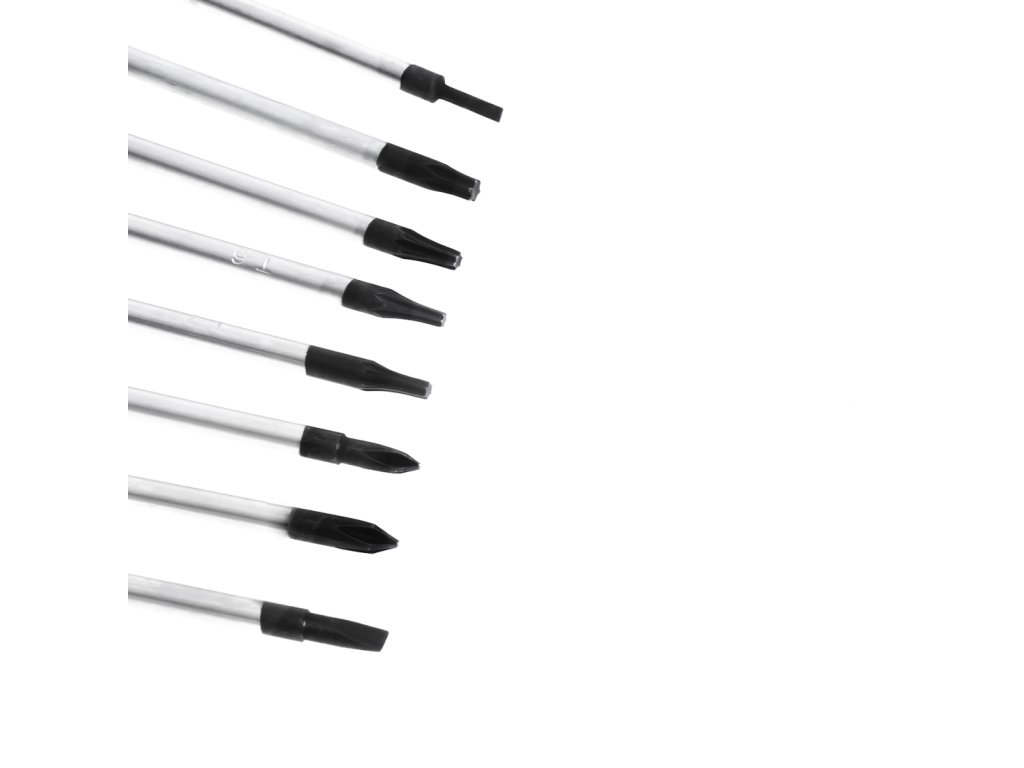Bohatá sada šroubováků, která byla navržena s ohledem na maximální pohodlí používání. Je ideálně přizpůsobena každému tvaru ruky. Gumová povrchová úprava zajišťuje jistý úchop a usnadňuje práci s nástrojem. Použití magnetických koncovek v sadě šroubováků poskytuje ještě větší možnosti a přesnost při šroubování v obtížně přístupných místech! Použití vysoce kvalitních materiálů, jako je slitina chromu a vanadu, při výrobě šroubováků výrazně prodlužuje jejich životnost a odolnost. Součástí sady je magnetizér, který umožňuje magnetizaci a demagnetizaci šroubováků, bitů, klíčů a mnoha dalších ocelových prvků a nástrojů. Zařízení nevyžaduje napájení. Velmi silný magnet může pomoci při čištění pracoviště. od kovových pilin.