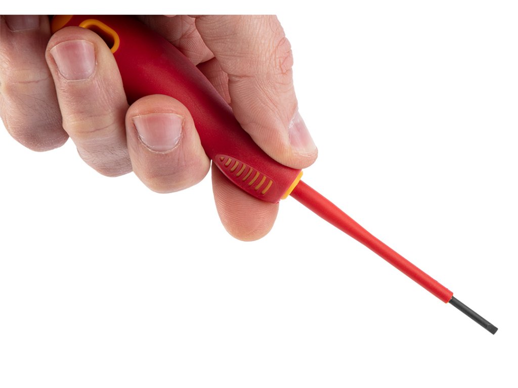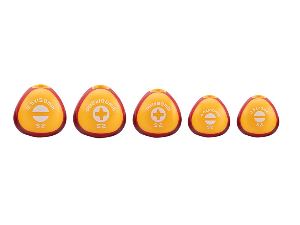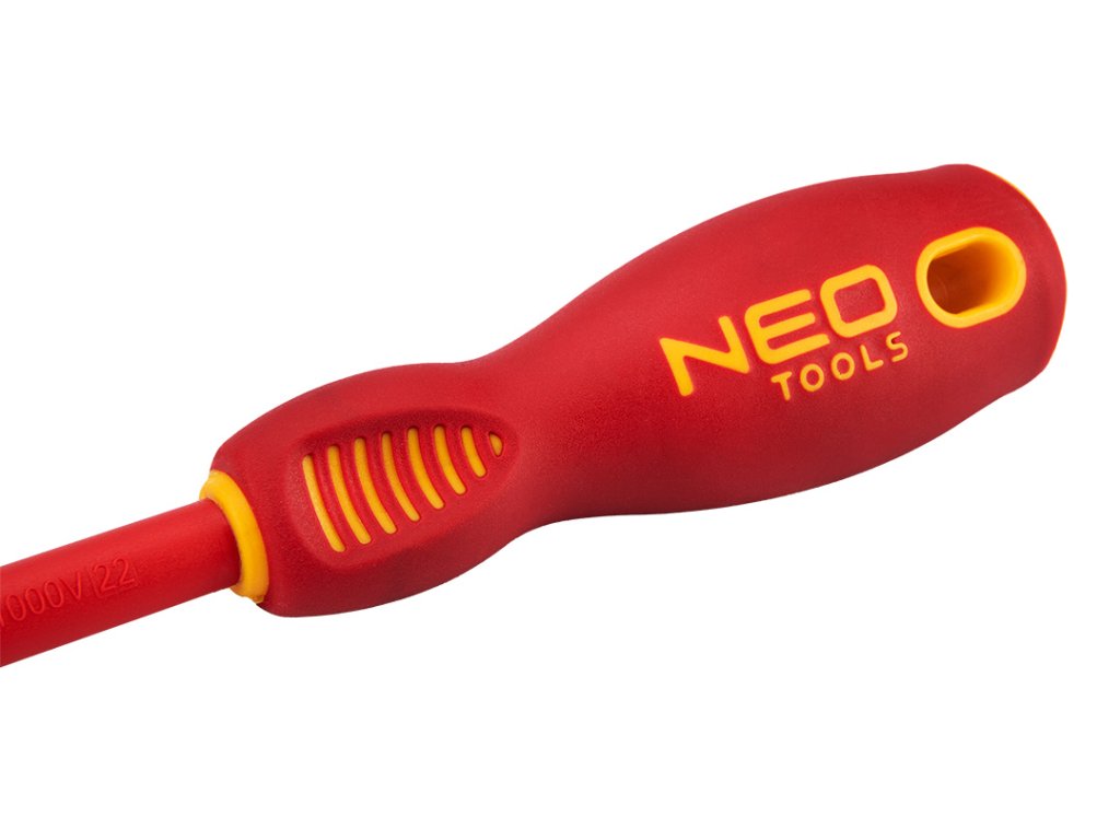 Sada šroubováků NEO 1000 V (ref. 04-220) obsahuje 5 šroubováků: plochý a křížový. Čepel šroubováku je vyrobena z odolné oceli S2. Pracovní hrot čepele byl tepelně upraven, díky čemuž bylo dosaženo přiměřené tvrdosti a odolnosti vůči ohybu. Trojúhelníkový tvar rukojeti s tvarovanou opěrkou pro palec snižuje namáhání ruky při práci a usnadňuje dosažení optimálního točivého momentu. Rukojeť z dvojitého materiálu zabraňuje sklouznutí v ruce. Kvalitu nářadí potvrzuje certifikát TÜV a 25letá záruka výrobce. Značka NEO splňuje očekávání profesionálů. ocel