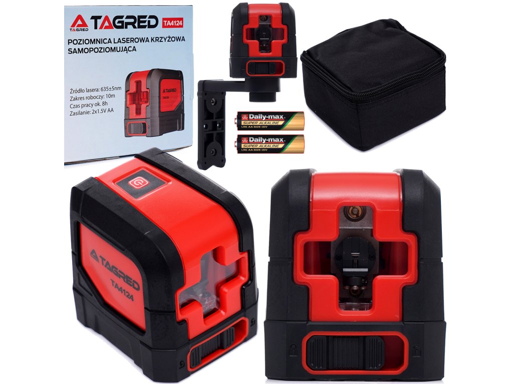 Profesionální křížová vodováha vyrobená z odolných materiálů, které zaručují dostatečnou odolnost zařízení během provozu. Doporučená odborníky pro firmy a domácí kutily. Díky standardnímu závitu lze zařízení namontovat na většinu univerzálních držáků a stojanů. Laserová vodováha TAGRED vysílá dva červené paprsky, horizontální a vertikální, které dopadají na sebe pod úhlem 90 stupňů.