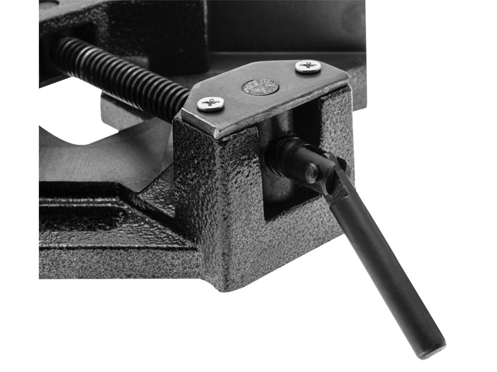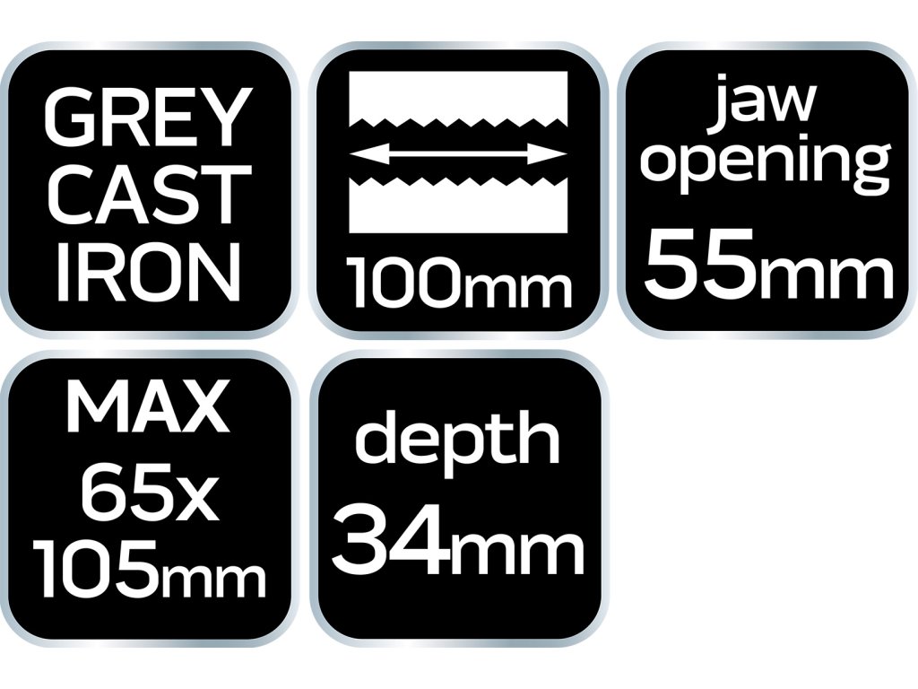 Svařovací svěrák, svorka 65 x 105 mm 35-040 od společnosti NEO se vyznačuje šířkou pracovní čelisti 100 mm a otvorem 55 mm. Maximální kapacita je 65 x 105 mm. Hloubka prodloužení čelistí je 34 mm. Tělo svěráku je vyrobeno z šedé litiny HT200, zatímco rukojeť je z oceli Q235. Mezi zvláštní výhody tohoto nástroje patří možnost otáčet šroubem a současně opracovávat obrobky různých velikostí. Za zmínku stojí také šroubovací tyč, která má strukturu závitu ve tvaru písmene T, což přispívá k větší pevnosti svěráku. Nářadí značky NEO je určeno pro všechny druhy dílenských a svářečských prací, které vyžadují upínání obrobků.
