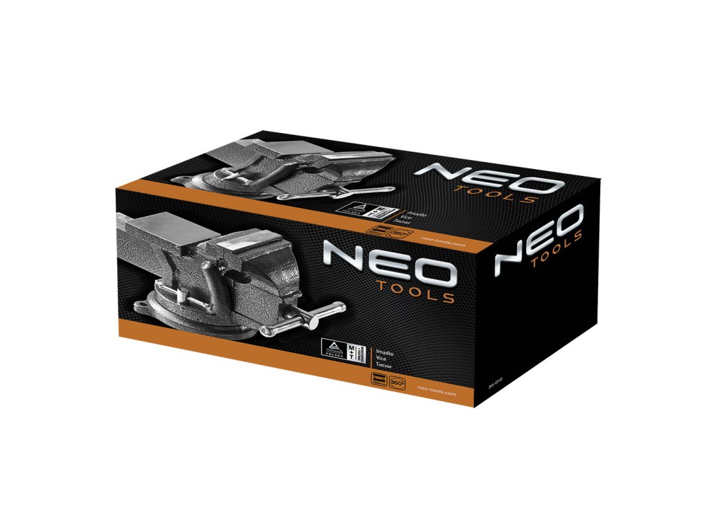 Zámečnický svěrák NEO (ref. 35-010) s vysokou upínací silou, délka 100 mm. Určeno pro upínání předmětů, které se zpracovávají ručně nebo strojově. Robustní litinová konstrukce a přesné vedení čelistí umožňují používat svěrák i pro těžkou práci. Otočná základna umožňuje umístit obrobek do nejpohodlnější polohy pro práci. Zárukou vysoké kvality a spolehlivosti výrobku je certifikát TÜV Rheinland. Značka NEO splňuje očekávání profesionálů.