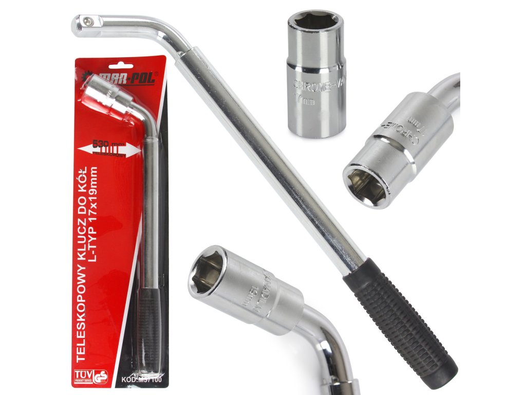 Teleskopický klíč na kola s nástavcem 17x19 mm.